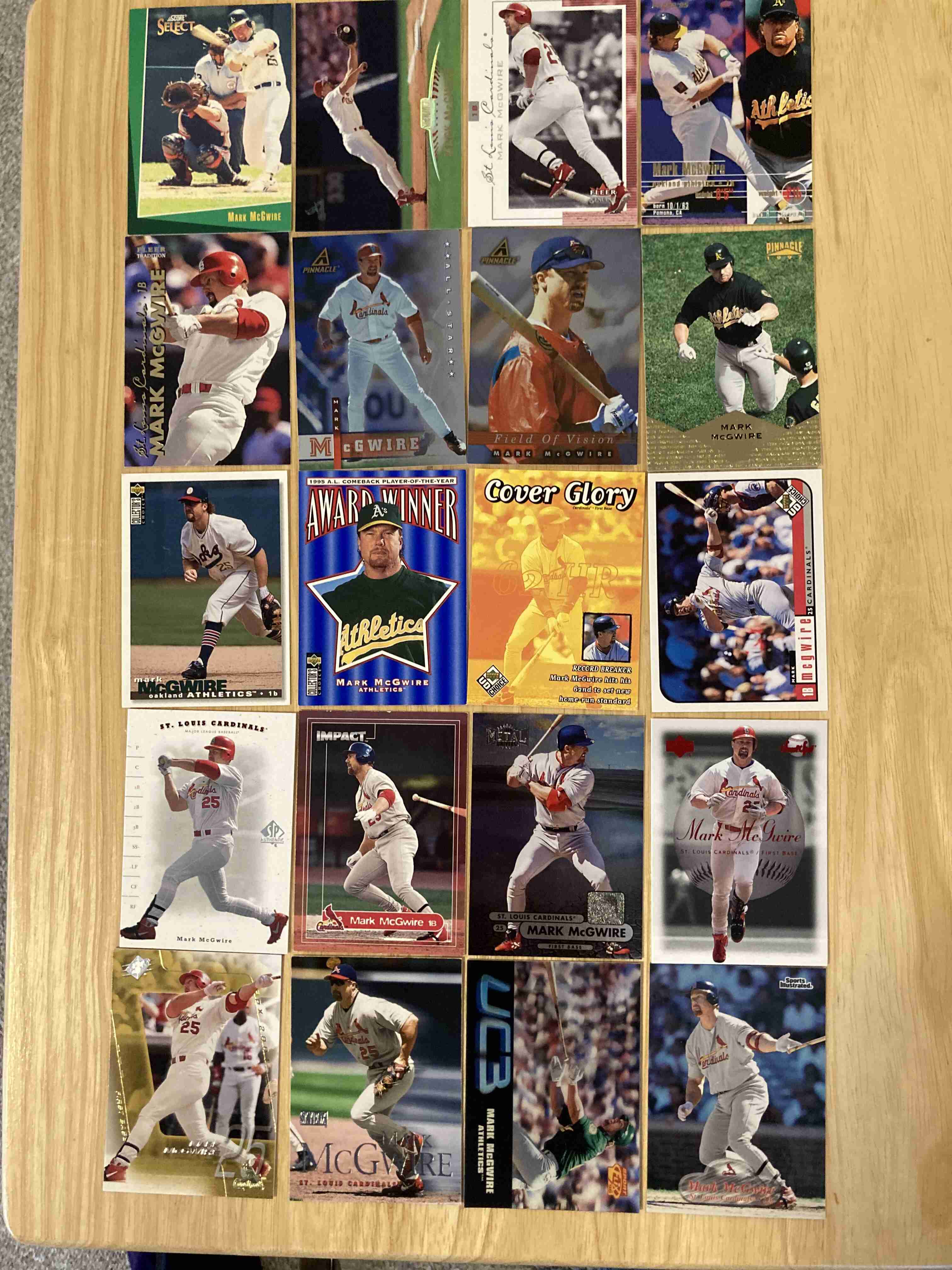 Mark McGwire 80 card lot. No Duplicates. Base and inserts