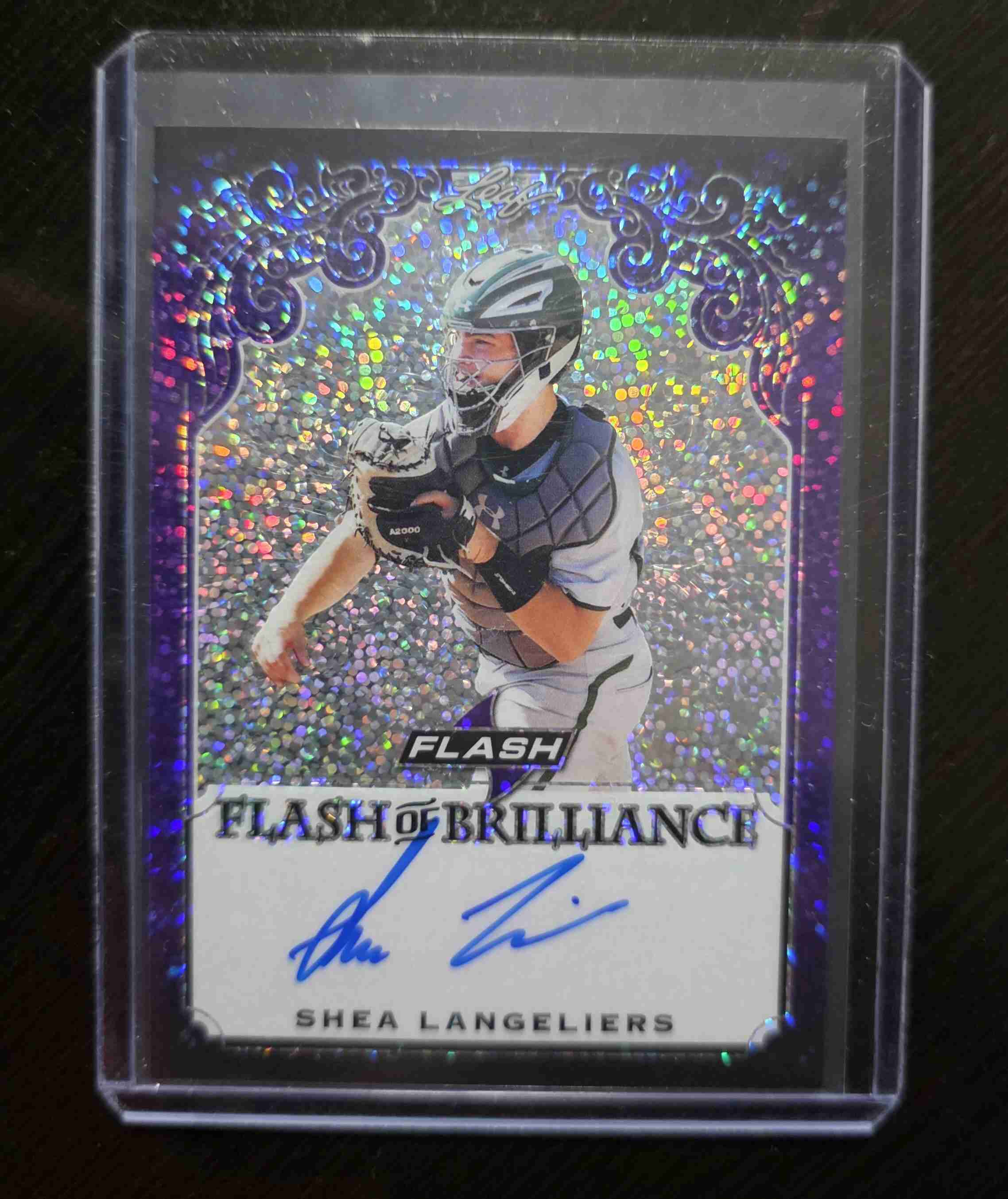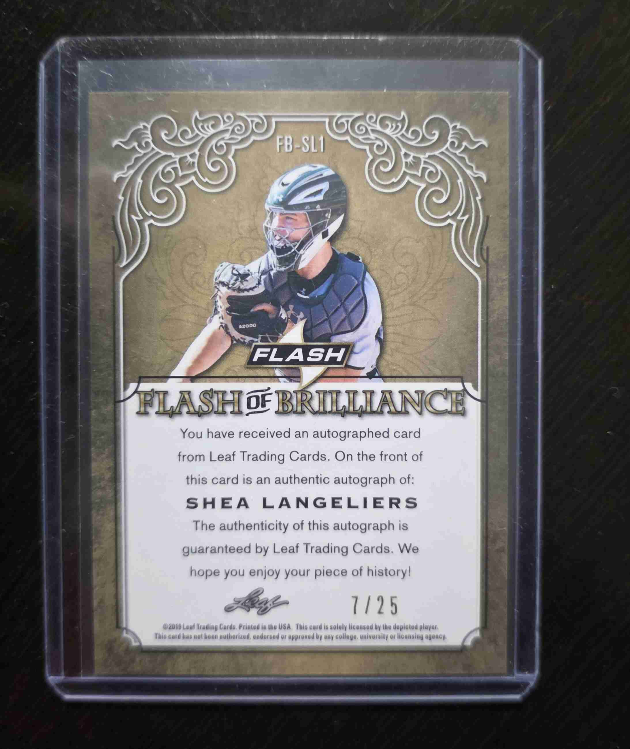 2019 Leaf Flash Brilliance Shea langeliers Auto 7/25. Card is in Nr-Mt condition.