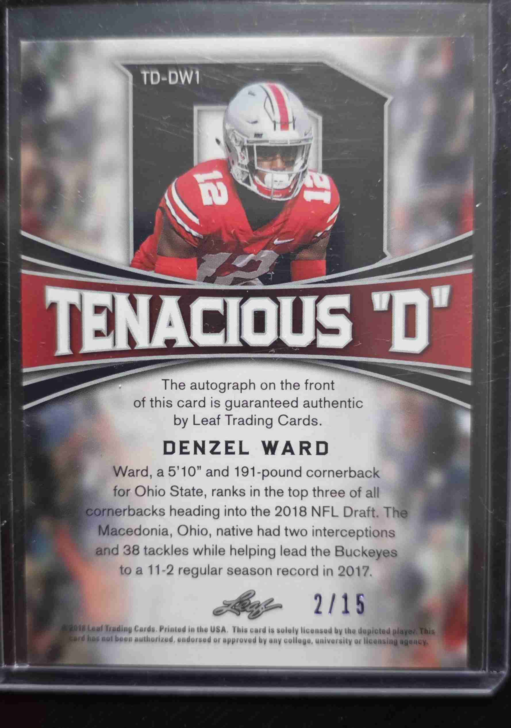 2018 Leaf Metal Draft Tenacious D Denzel Ward Auto #2/15. Card is in Nr-Mt condition.