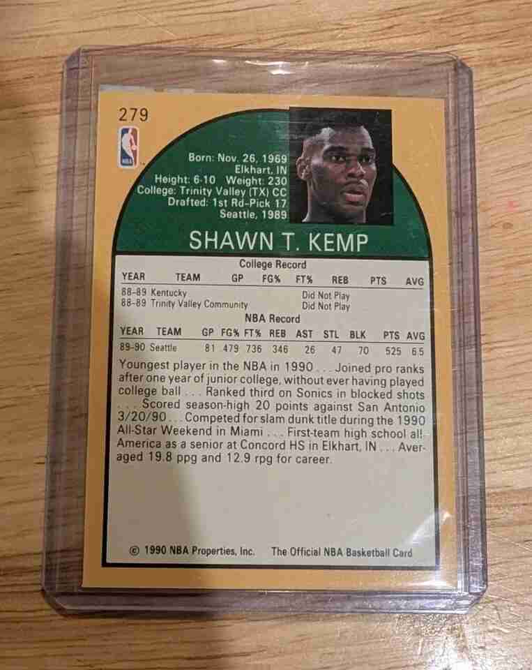 90-91 Hoops #279 Shawn Kemp RC Seattle SuperSonics Rookie