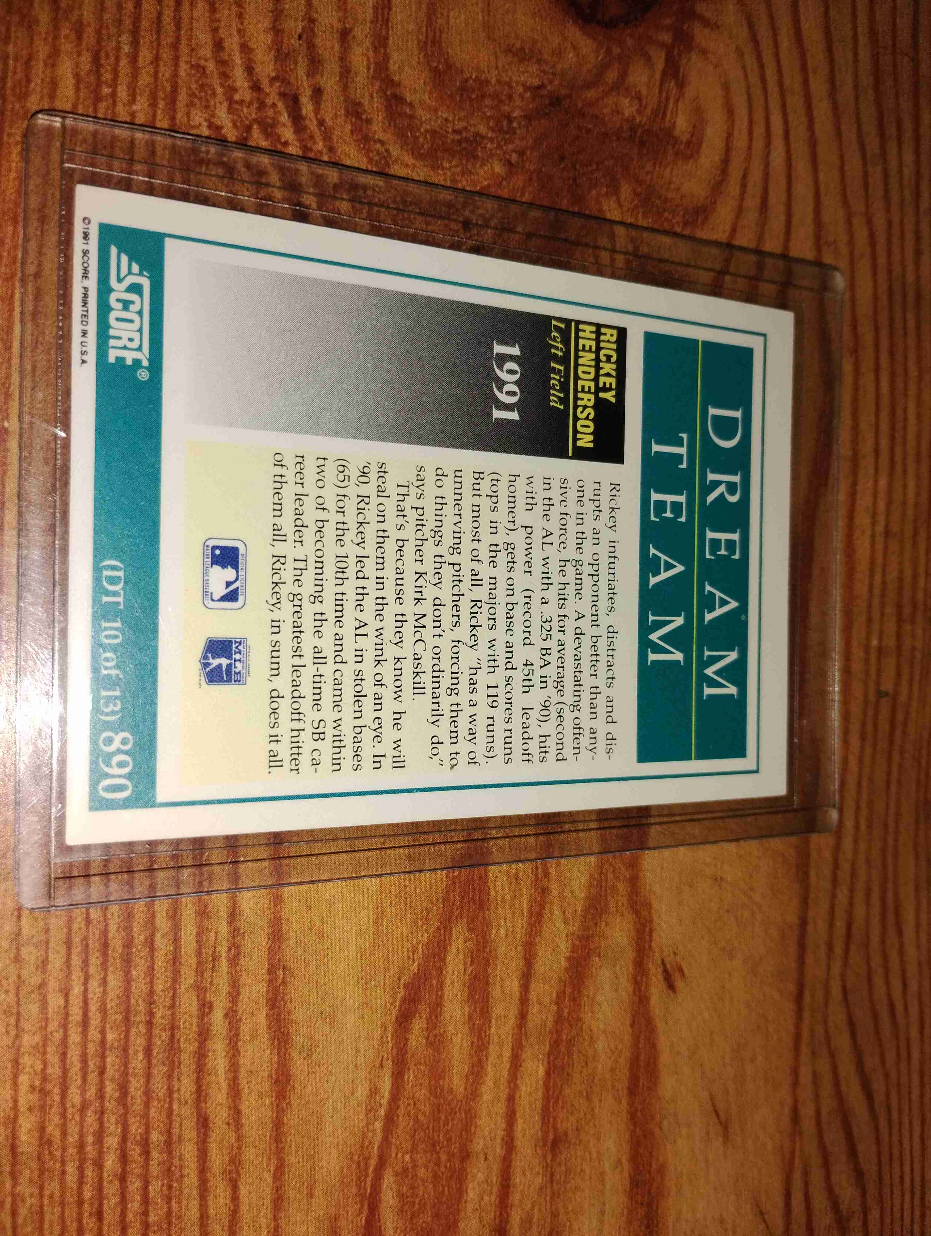 RICKEY HENDERSON 1991 SCORE DREAM TEAM CARD 10 OF 13
