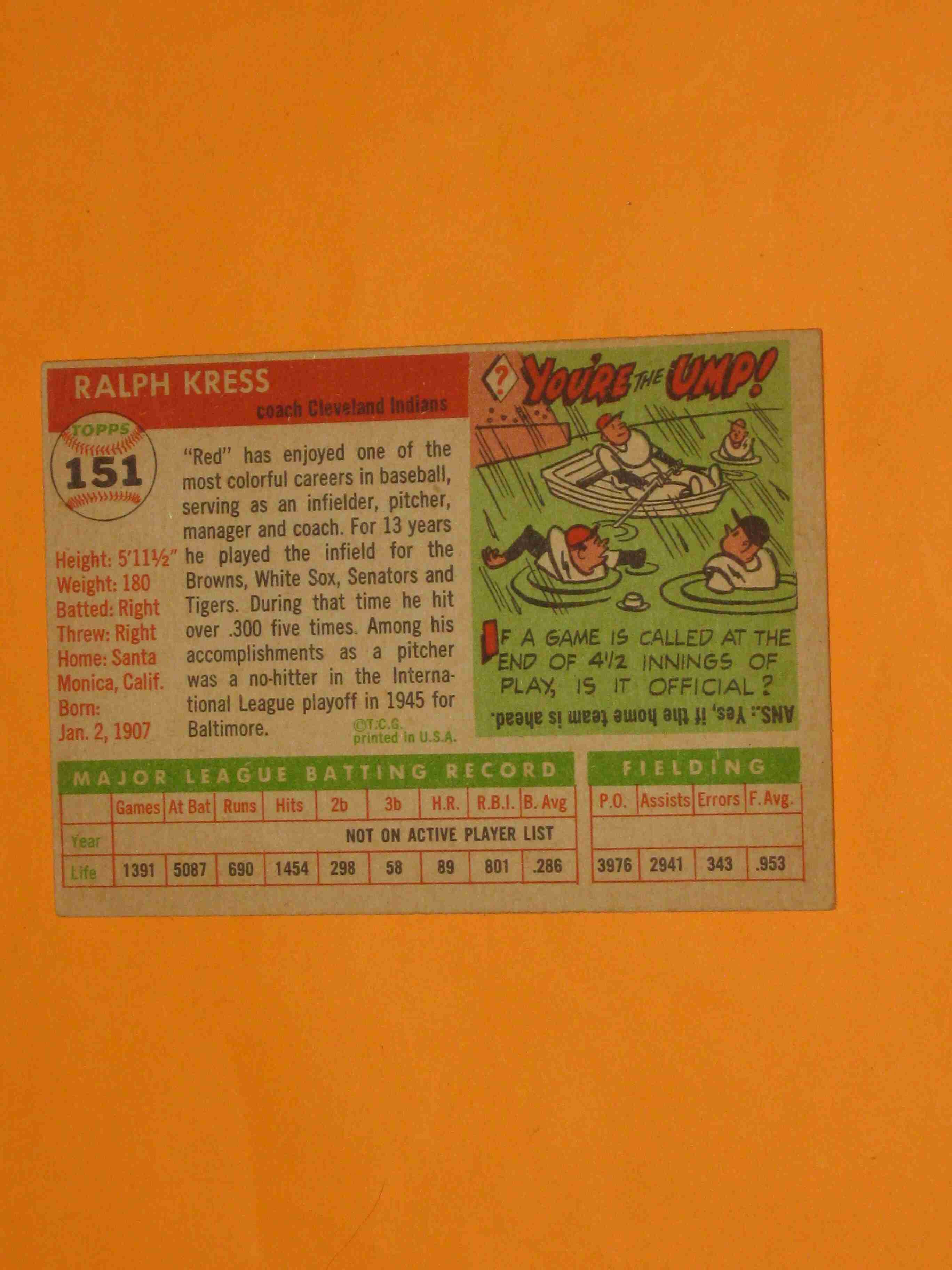 1955 Topps Red Kress #151 Cleveland Indians NICE