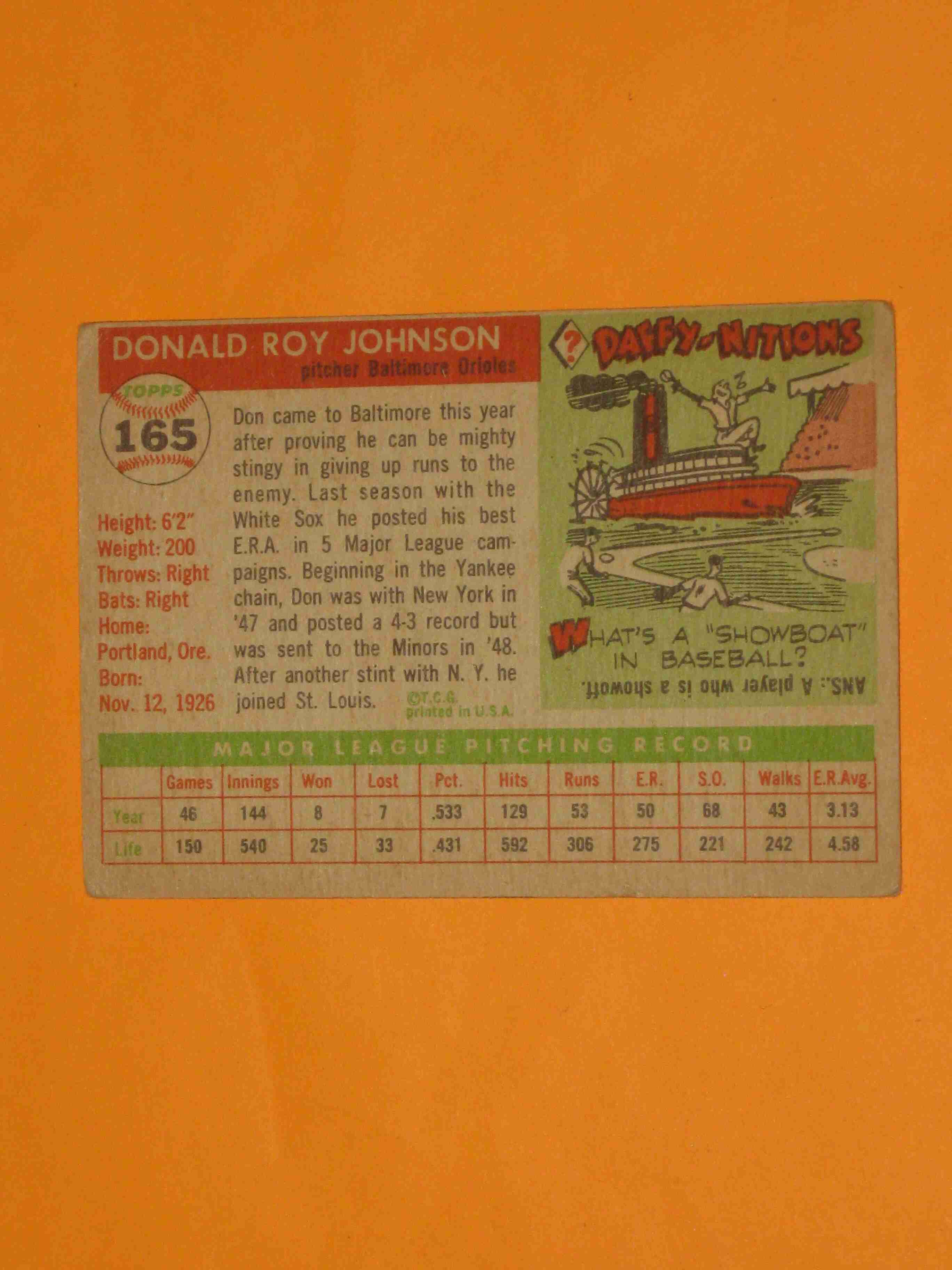 1955 Topps Don Johnson #165 Baltimore Orioles