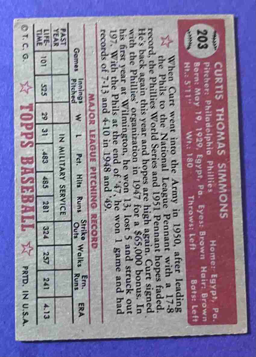 52 Topps CURT SIMMONS #203 +++