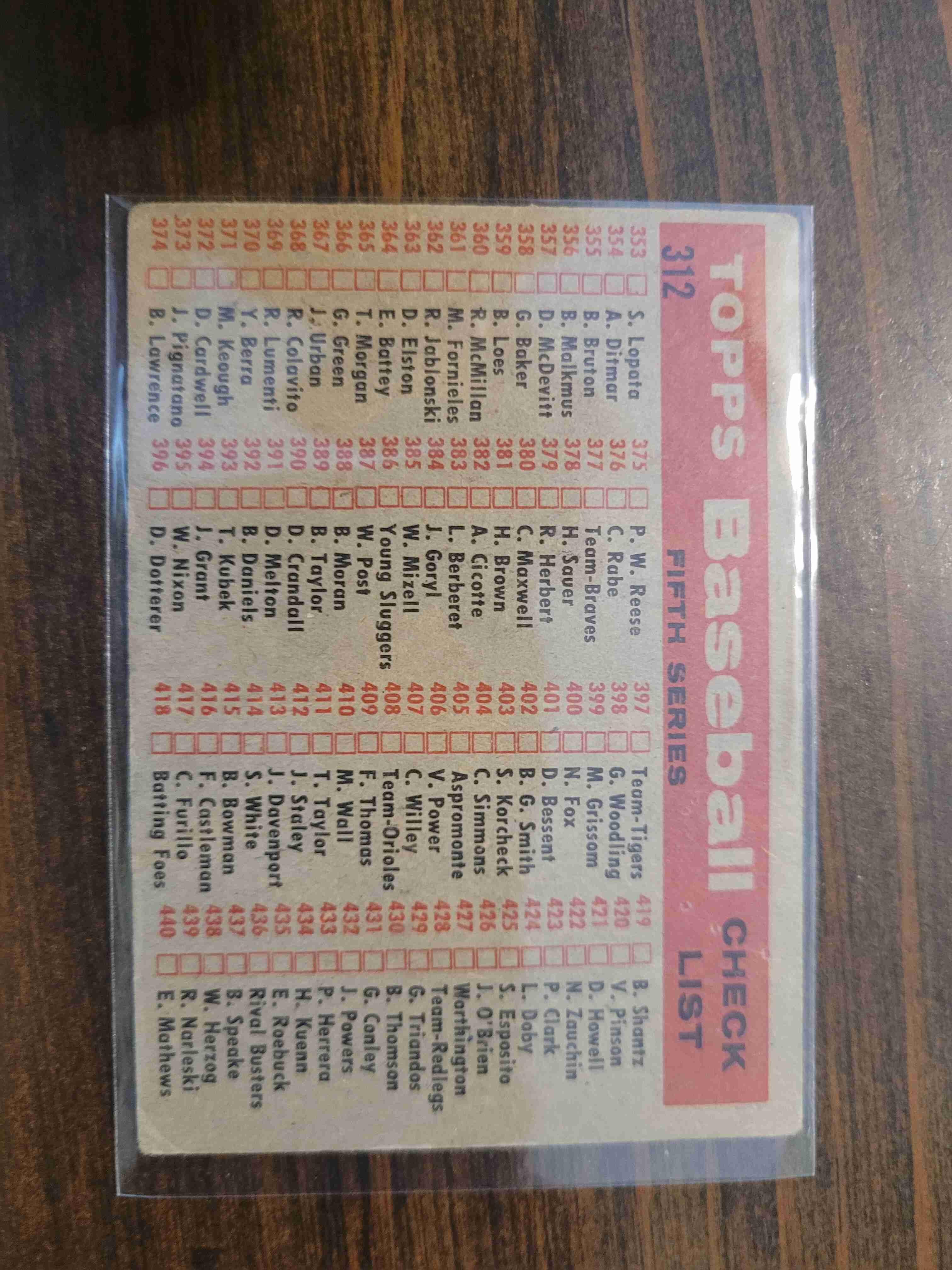 1958 TOPPS RED SOX TEAM CARD #312 UNCHECKED