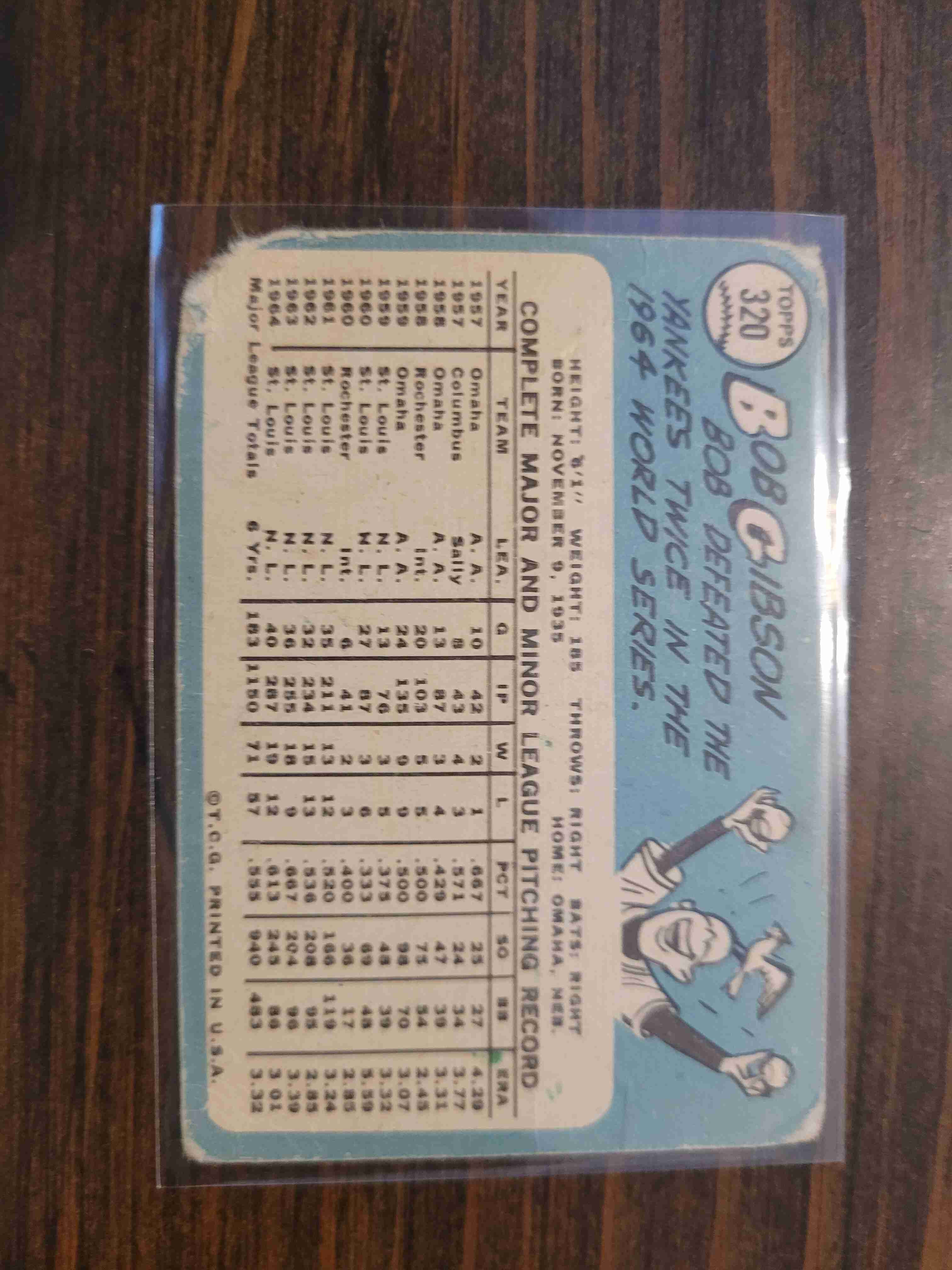 1965 TOPPS BOB GIBSON #320