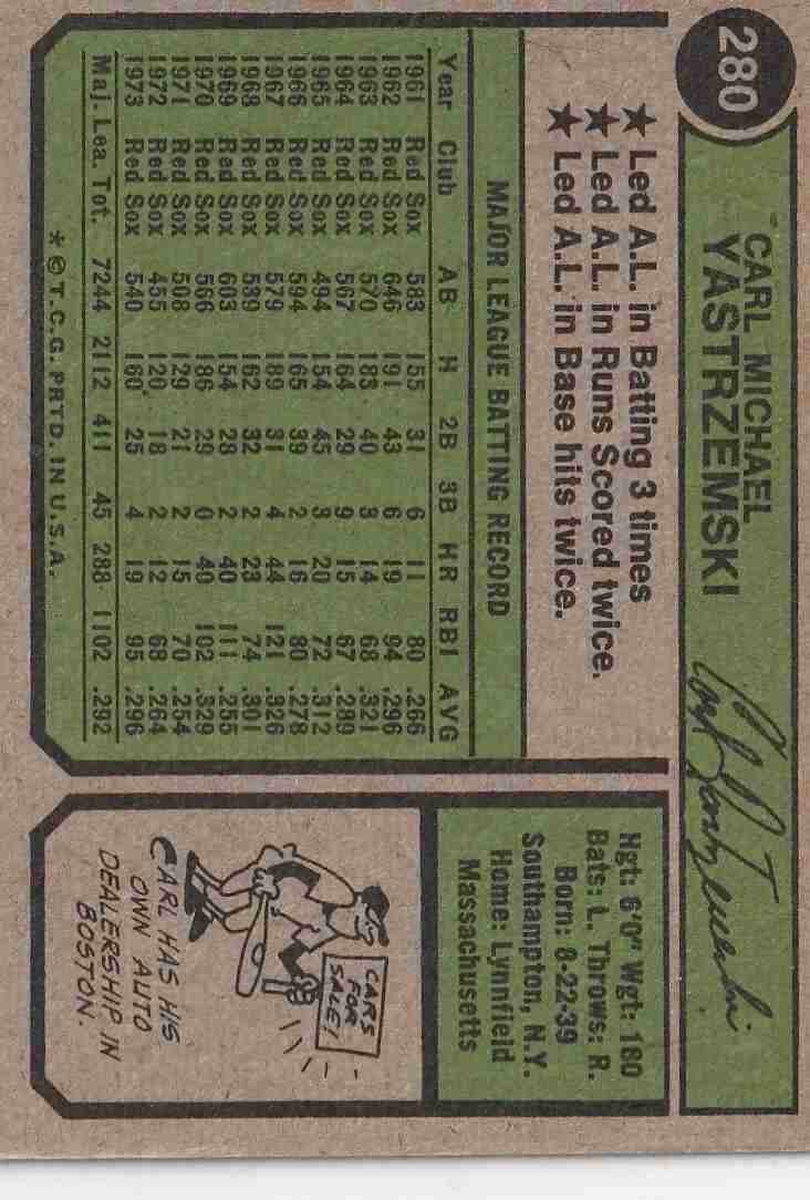 1974 Topps #280 Carl Yastrzemski Red Sox