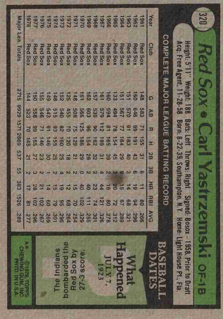 1979 Topps #320 Carl Yastrzemski Red Sox