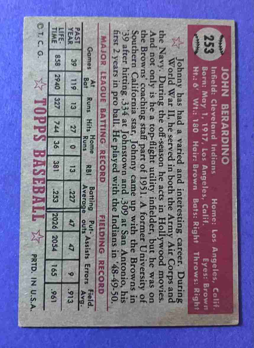 52 Topps JOHN BERARDINO Semi-Hi #253 +++