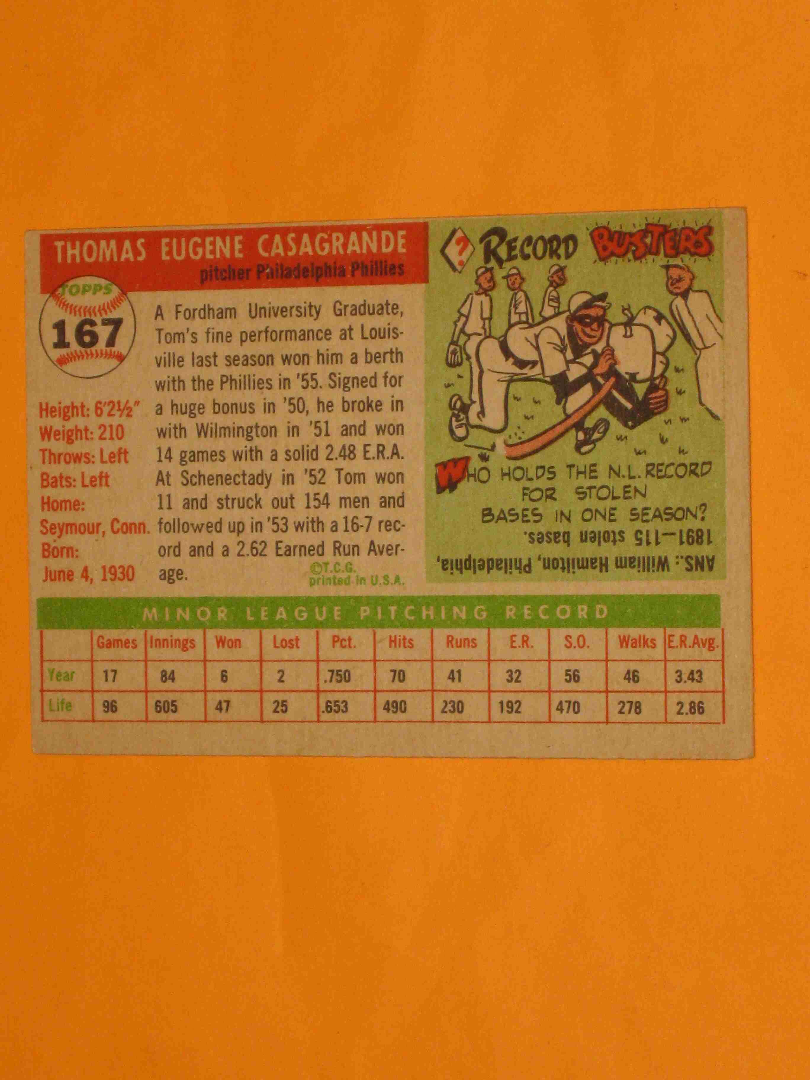 1955 Topps Tom Casagrande # Philadelphia Phillies NICE