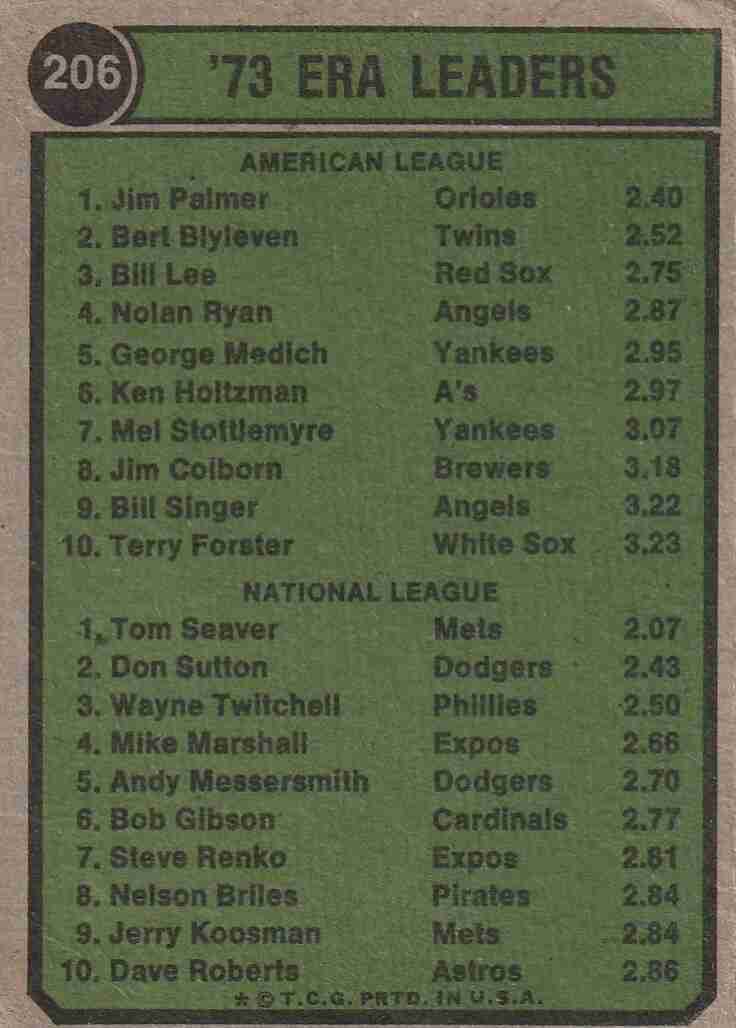 1974 Topps #206 '73 ERA Leaders Palmer Seaver