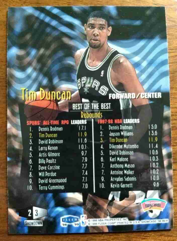TIM DUNCAN, 1998-99 FLAIR SHOWCASE PASSION #23, SPURS