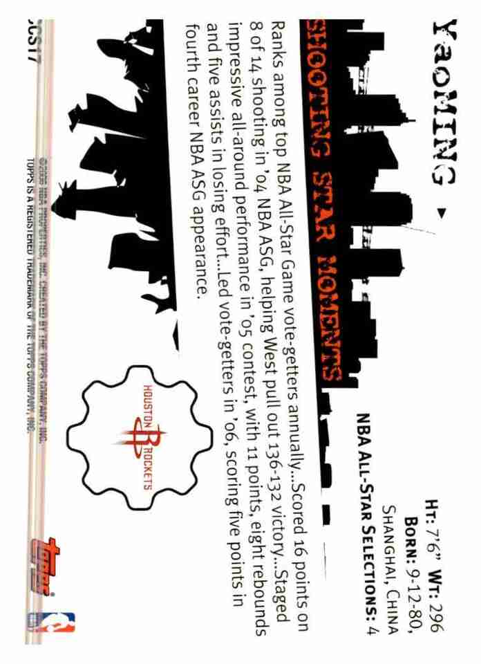 06-07 Topps Clutch City Stars Yao Ming Insert Card #CCS17