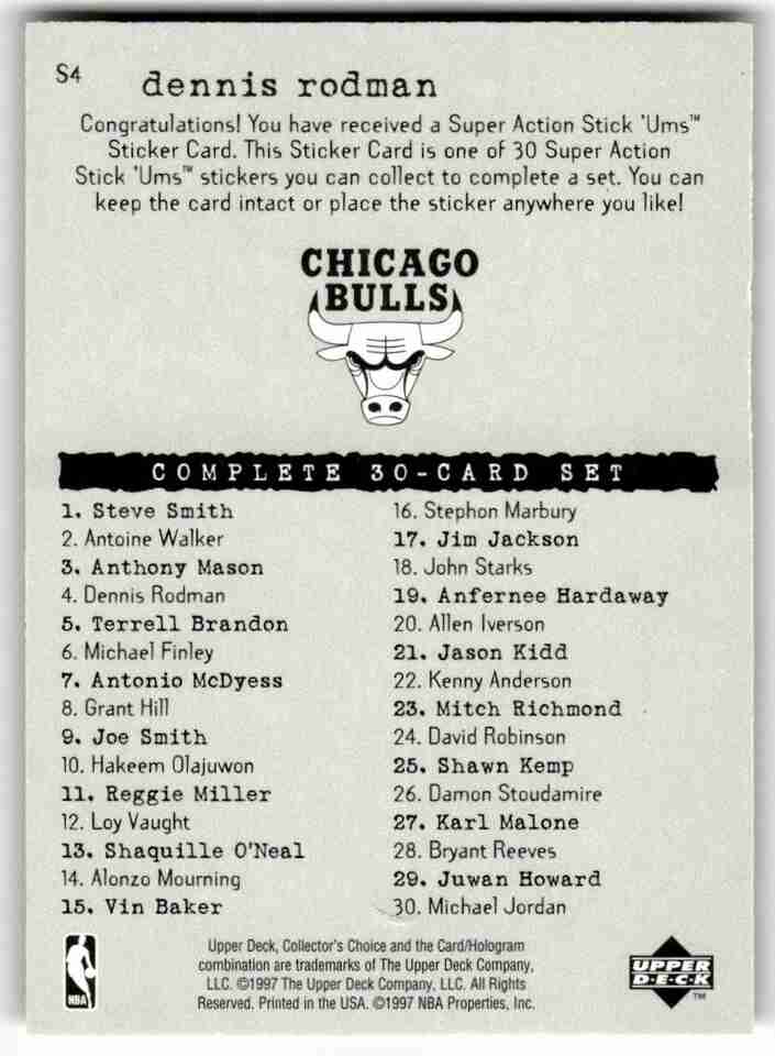 97-98 Collector's Choice Dennis Rodman Super Action Stick U