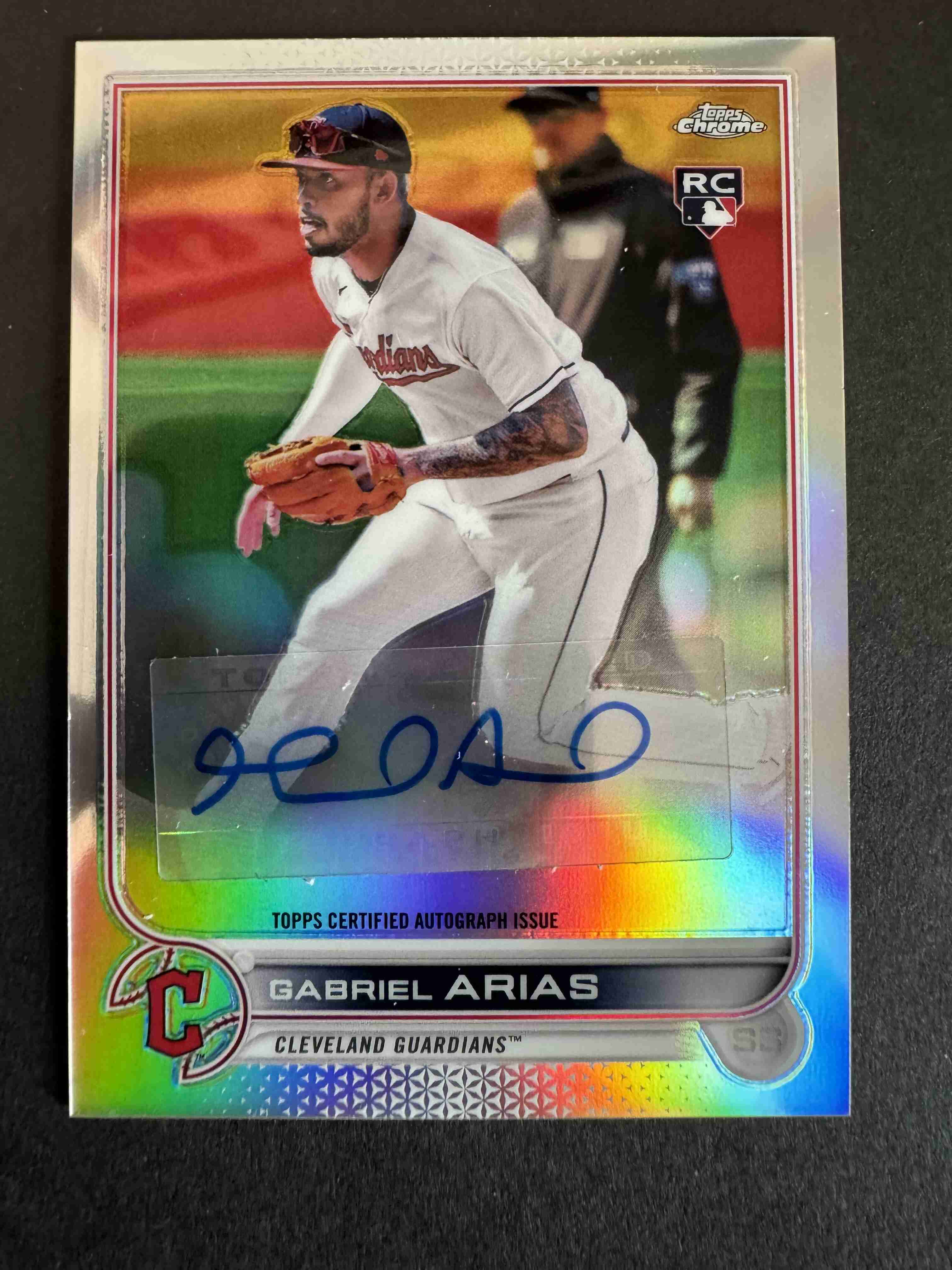 This auction is for a Gabriel Arias, 2022 Topps Chrome Rookie Card Autograph. Card ships in a Card Saver 1 and PWE.
