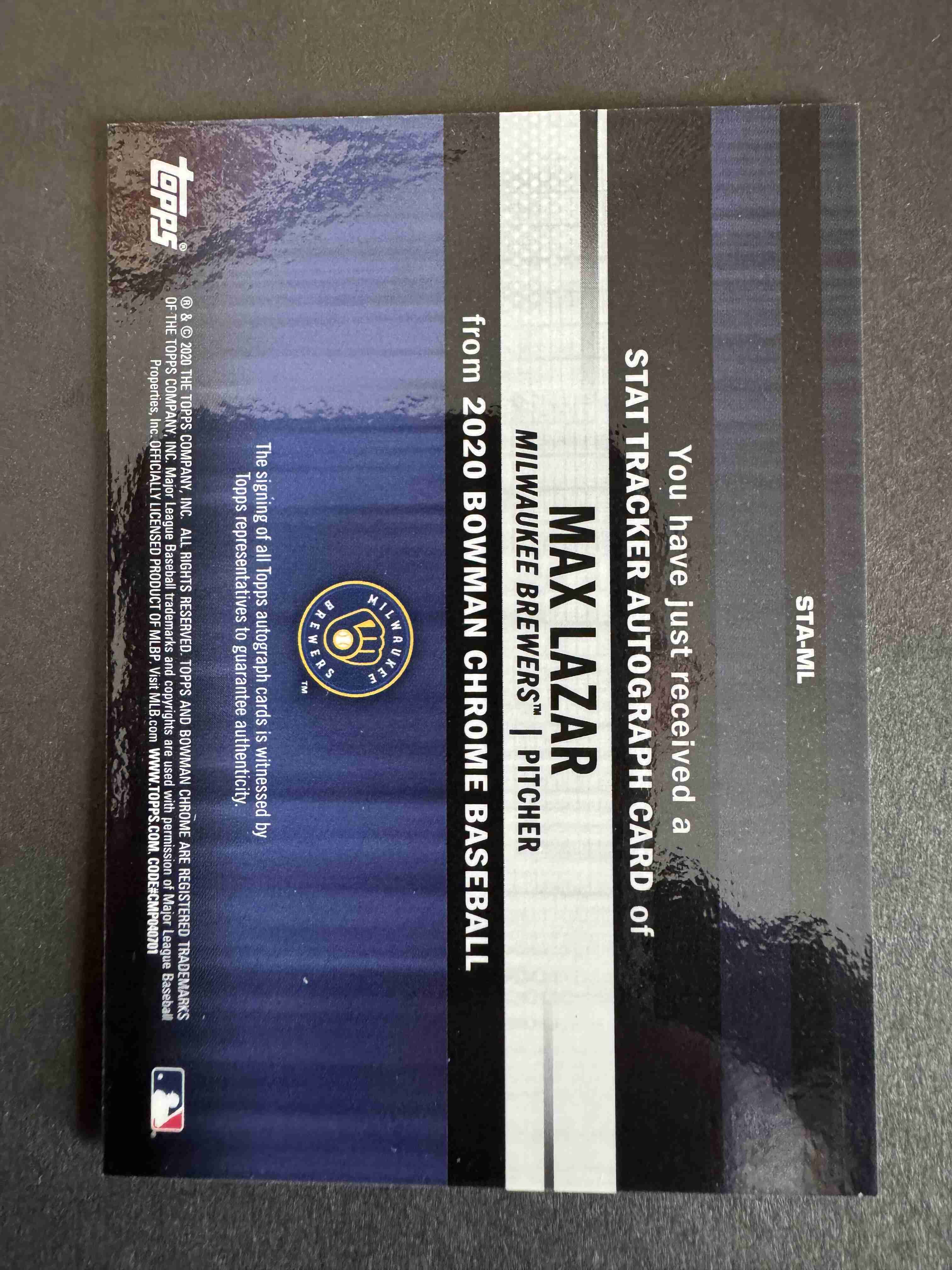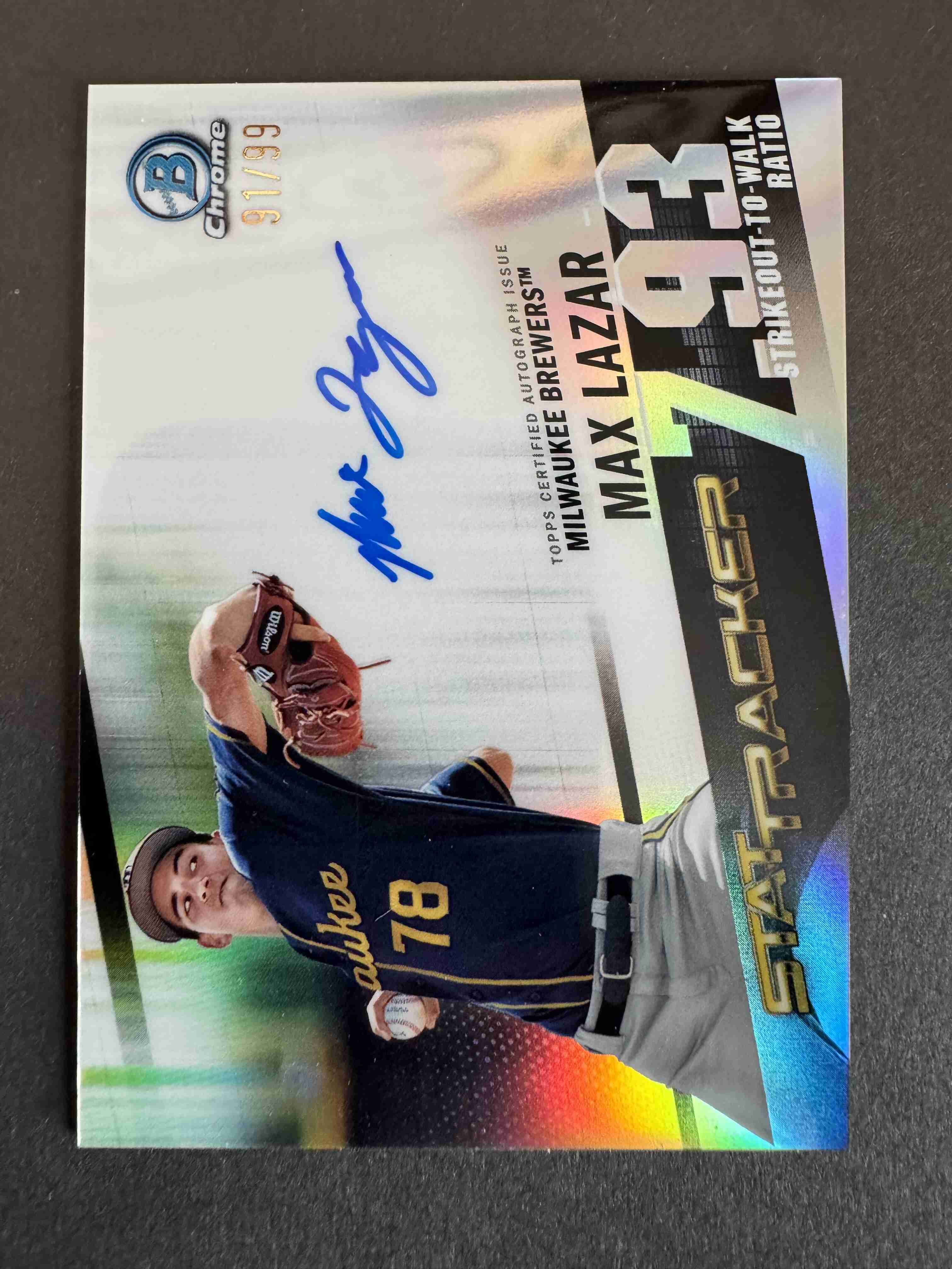 This auction is for a Max Lazar, 2020 Bowman Chrome Stat Tracker Autographed Rookie Insert /99. Card ships in a Card Saver 1 and PWE.