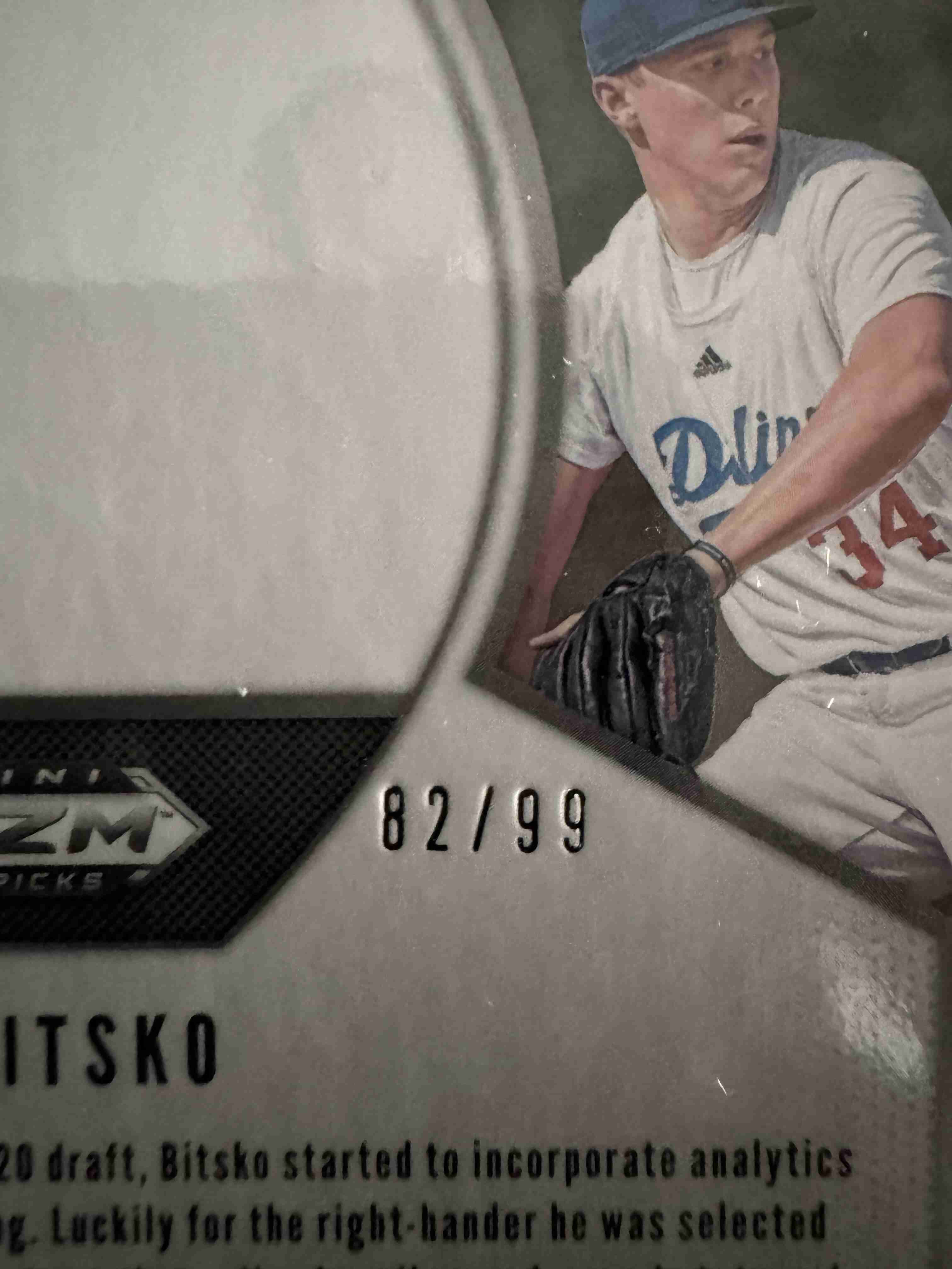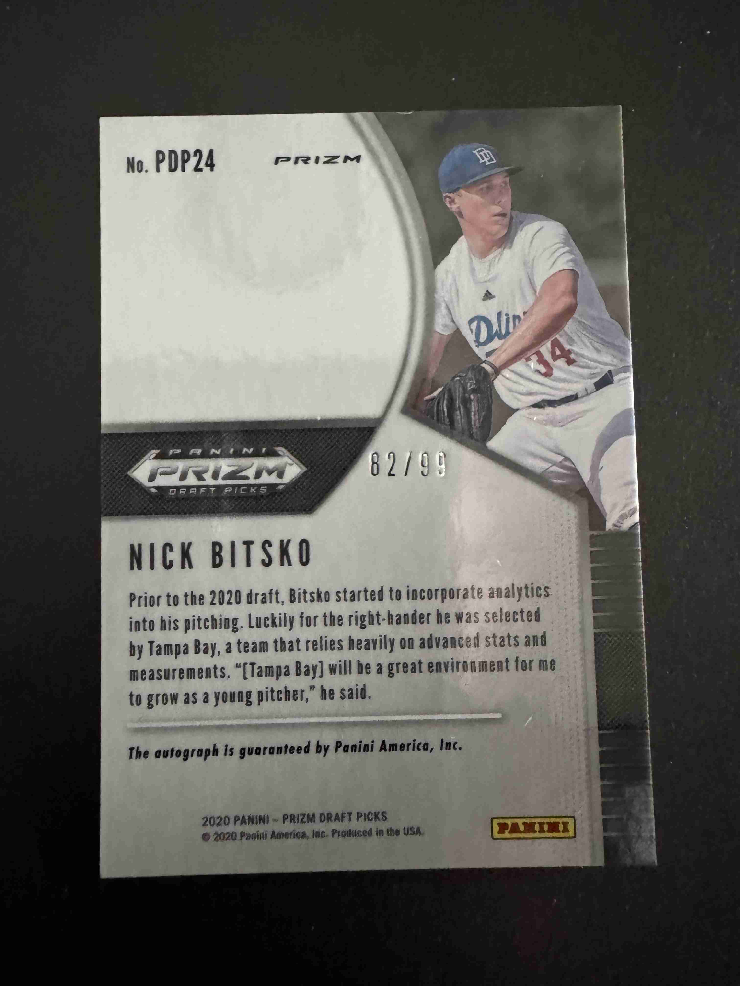 This auction is for a Nick Bitsko, 2020 Panini Prizm Draft Picks Autographed card /99. Card ships in Card Saver 1 and PWE.