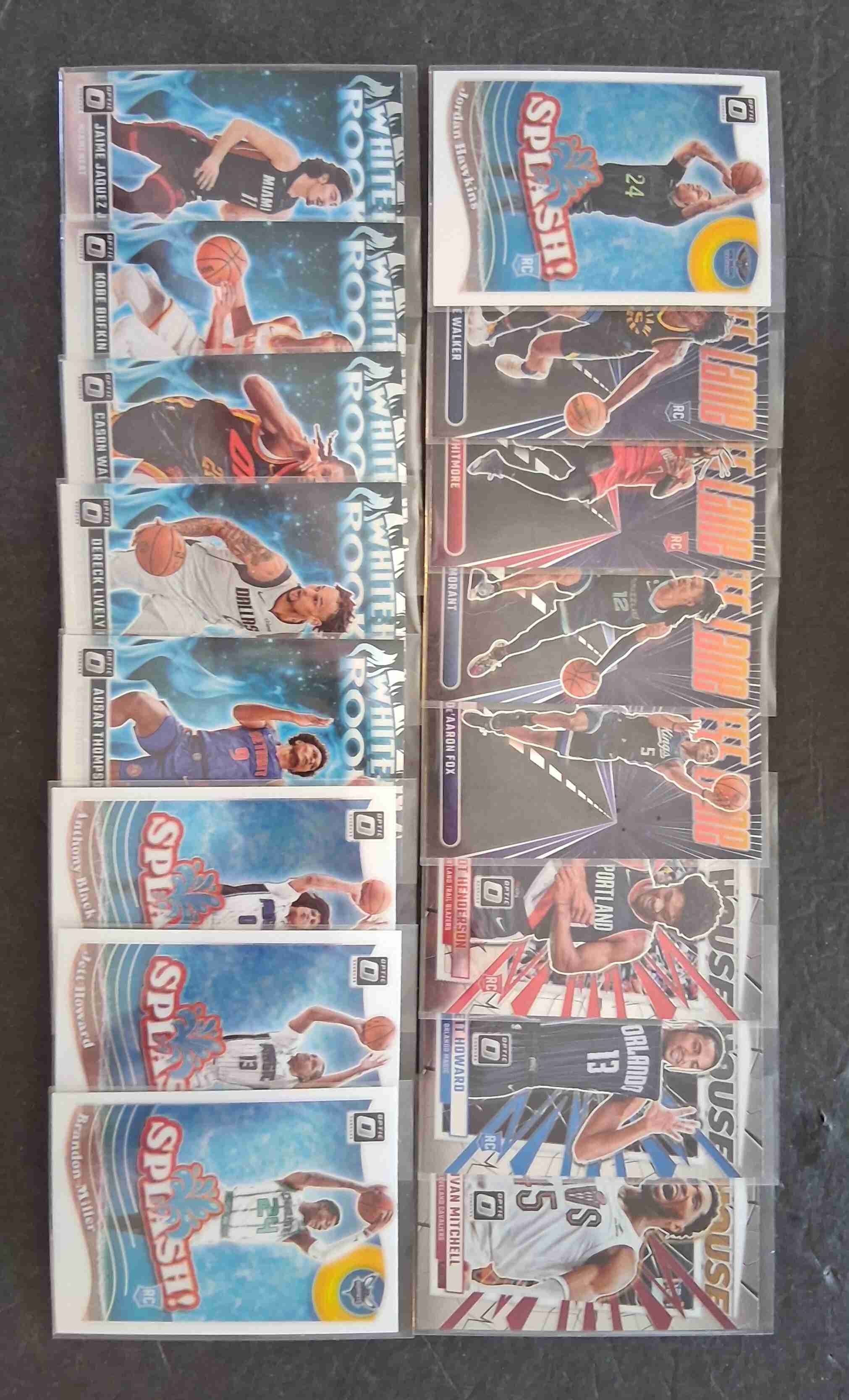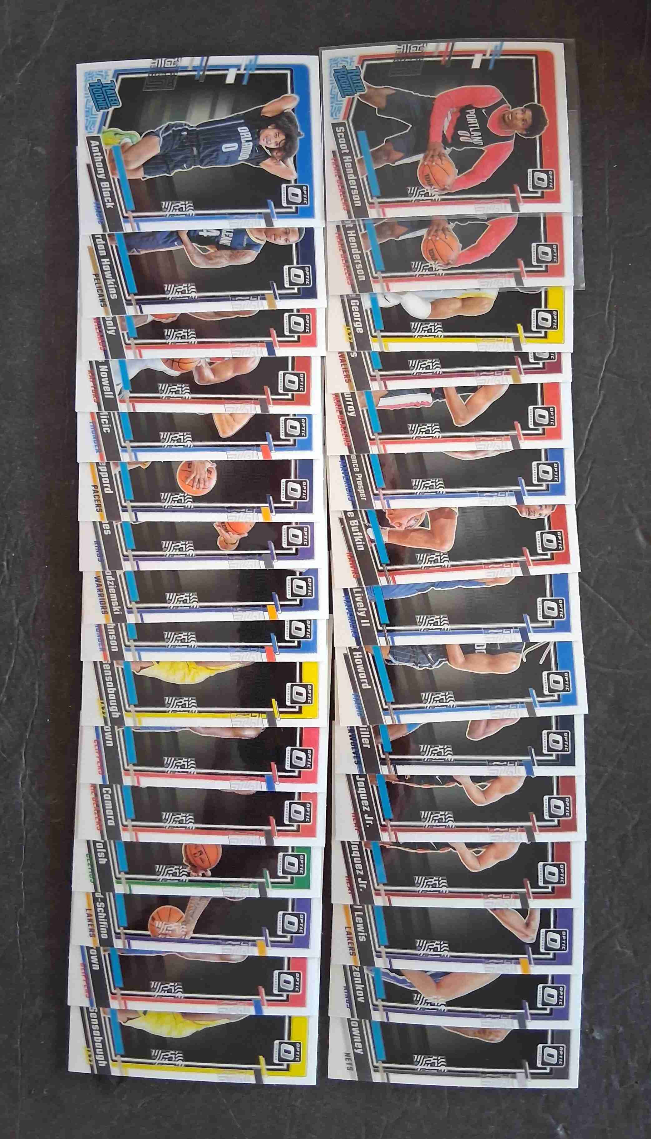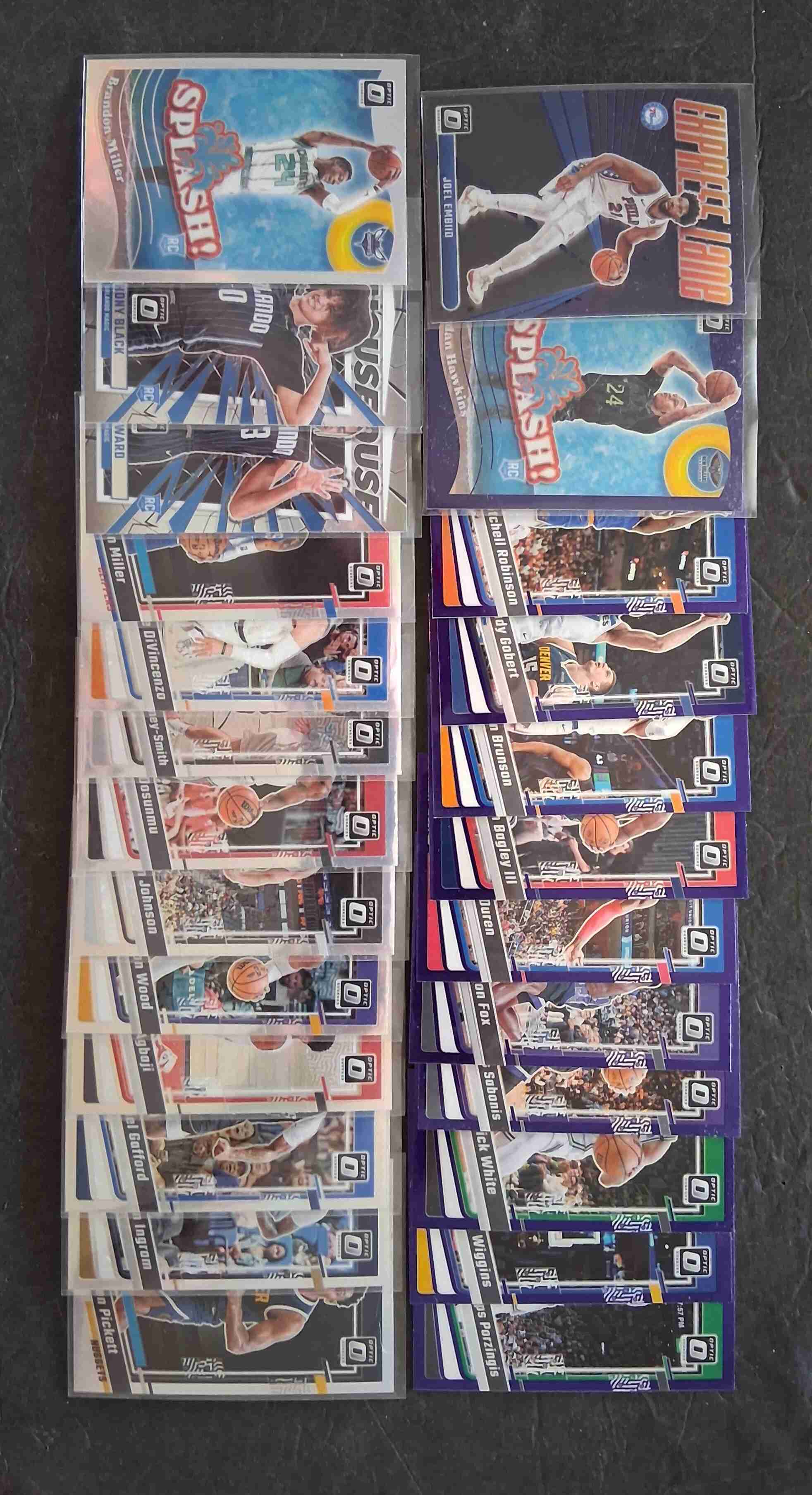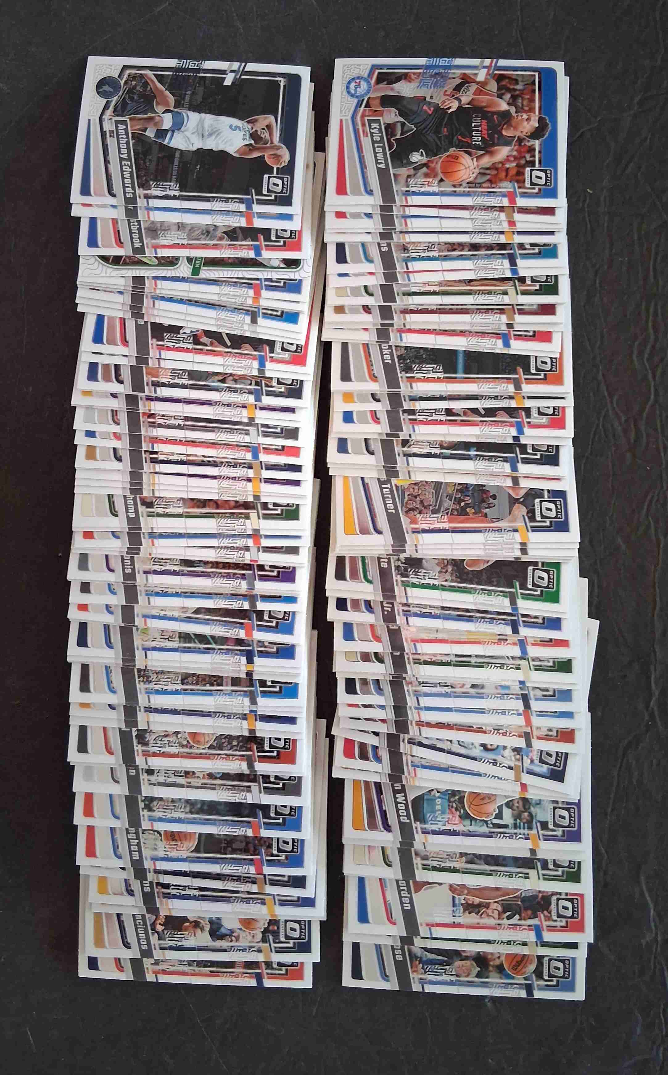 This auction is for a 220 card lot of 2023-24 Panini Optic Basketball cards.Around 149 Base cards with some stare and minor stars.31 Rated Rookies.12 Purple Parallel.13 Silver Prizm.And 16 Insert cards.Cards are in NM condition.Thanks for looking.