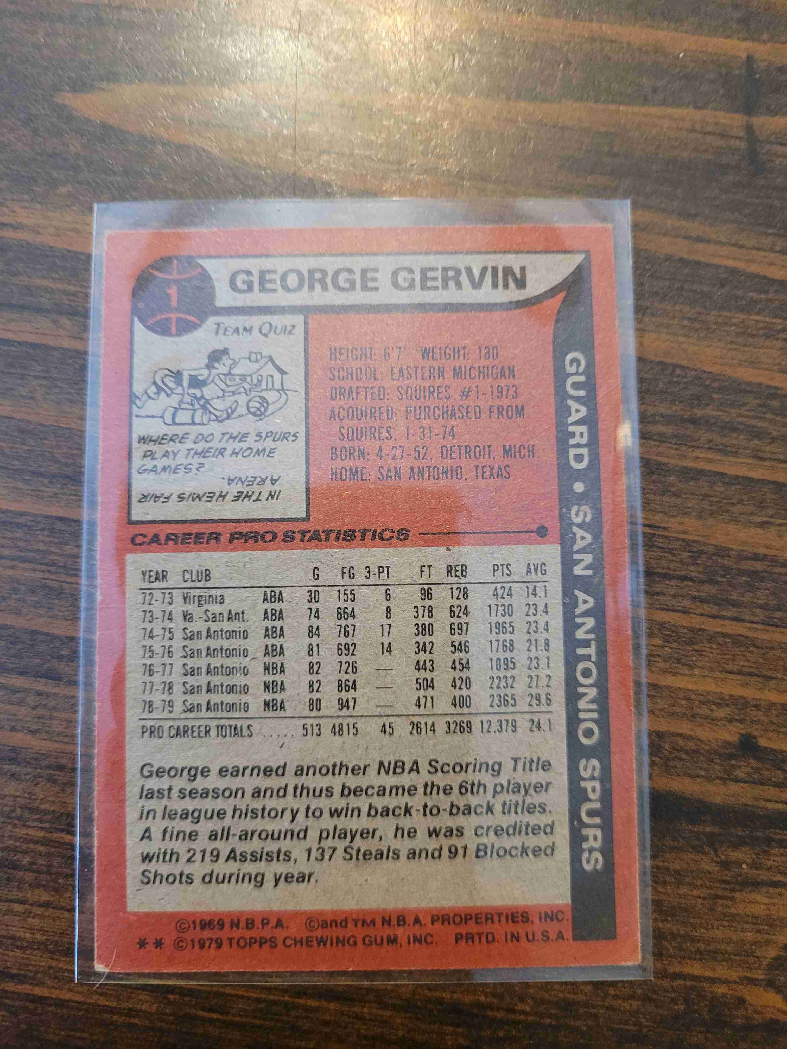 1979-80 TOPPS GEORGE GERVIN #1
