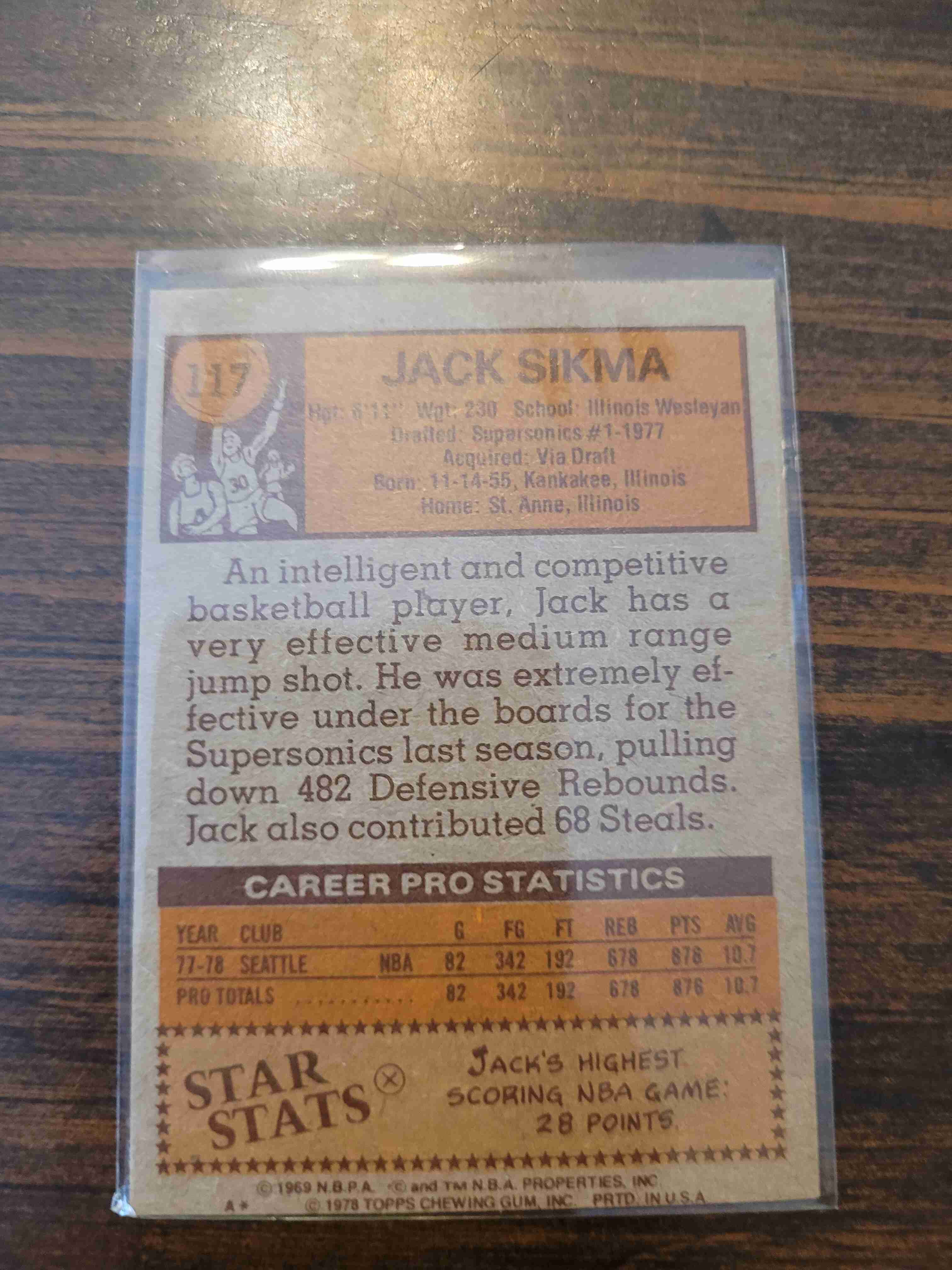 1978-79 TOPPS JACK SIKMA #117 ROOKIE