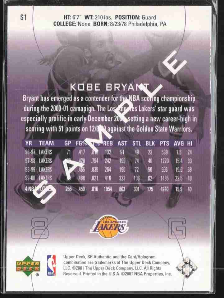 2000-01 SP Authentic #S1 Kobe Bryant SAMPLE