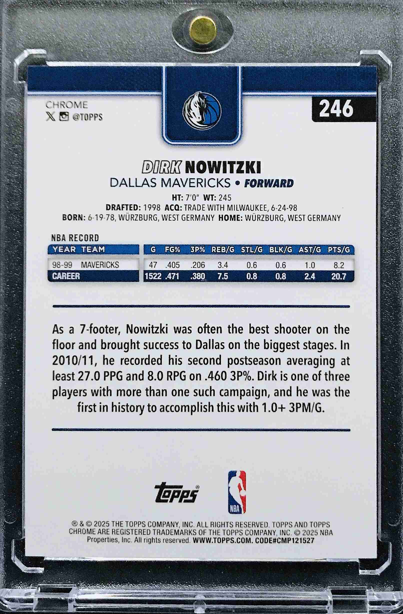 DIRK NOWITZKI - 2025-26 Yellow Basketball Refractors #246