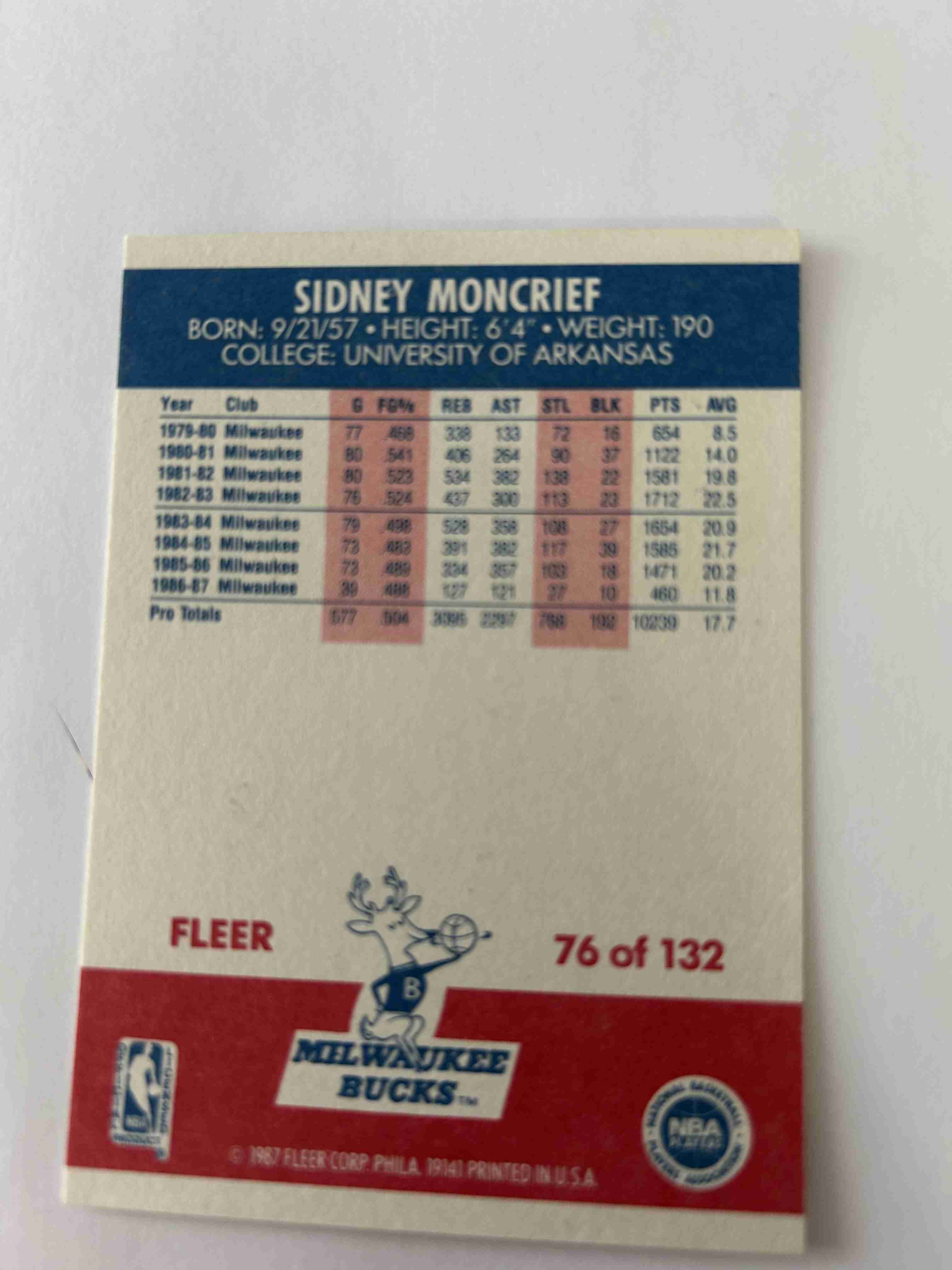 This auction is for a 1987 Fleer Basketball #76 Sidney Moncrief.