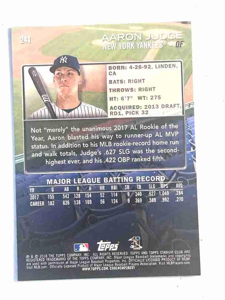 Aaron Judge 2018 Topps Stadium Club Second Year #241