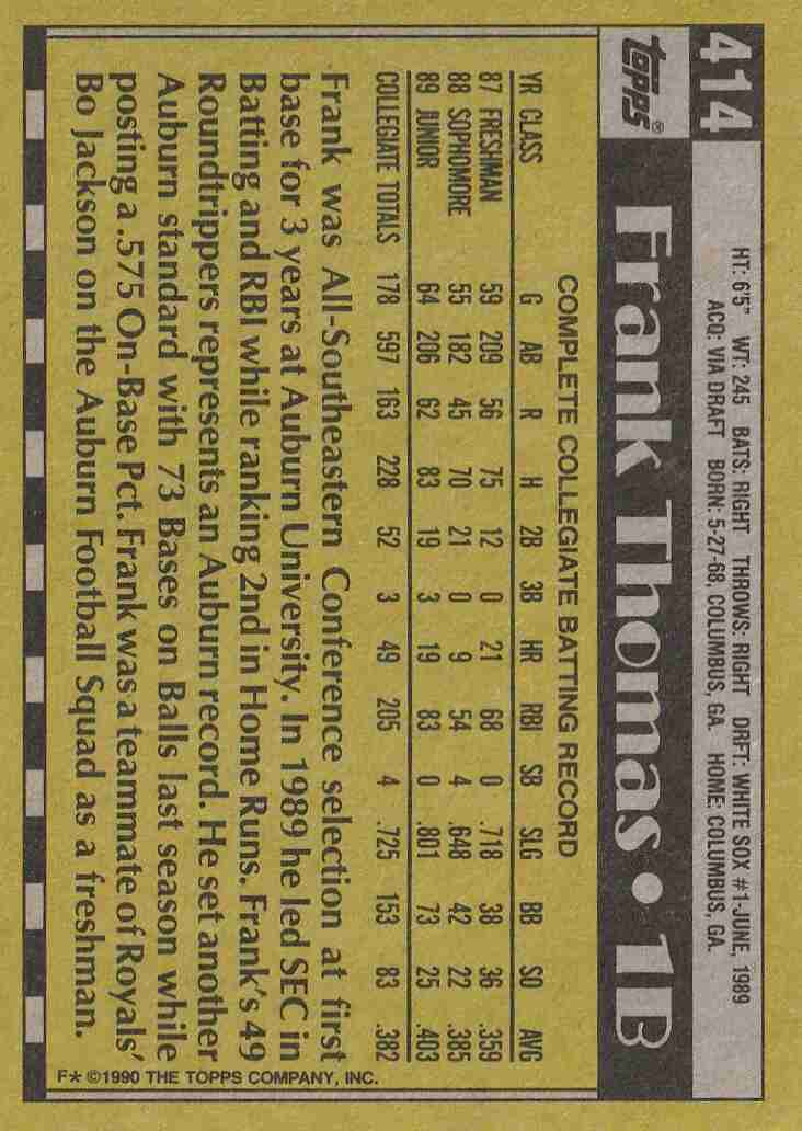 Topps #414 Frank Thomas White Sox #1 Draft Pick