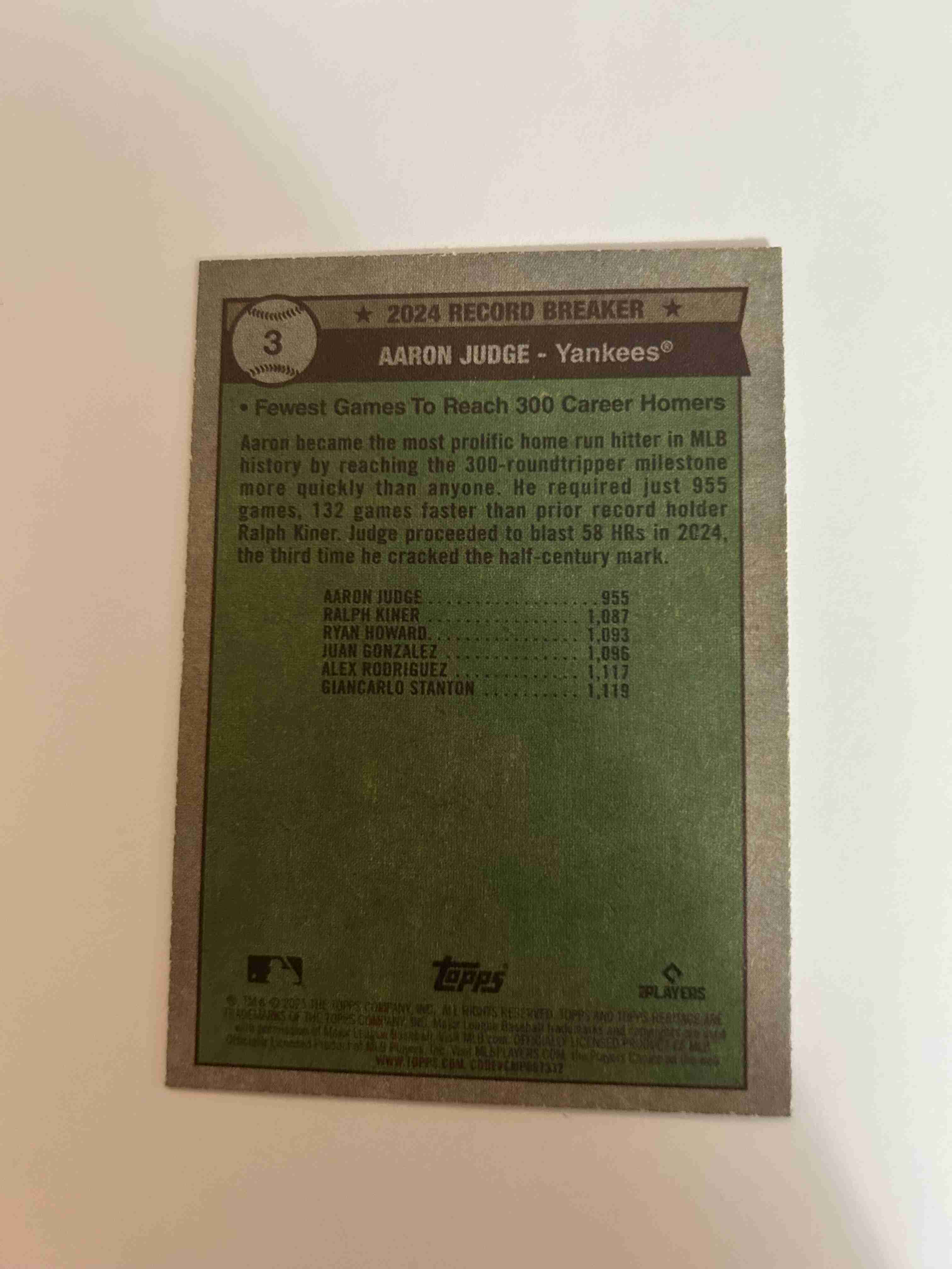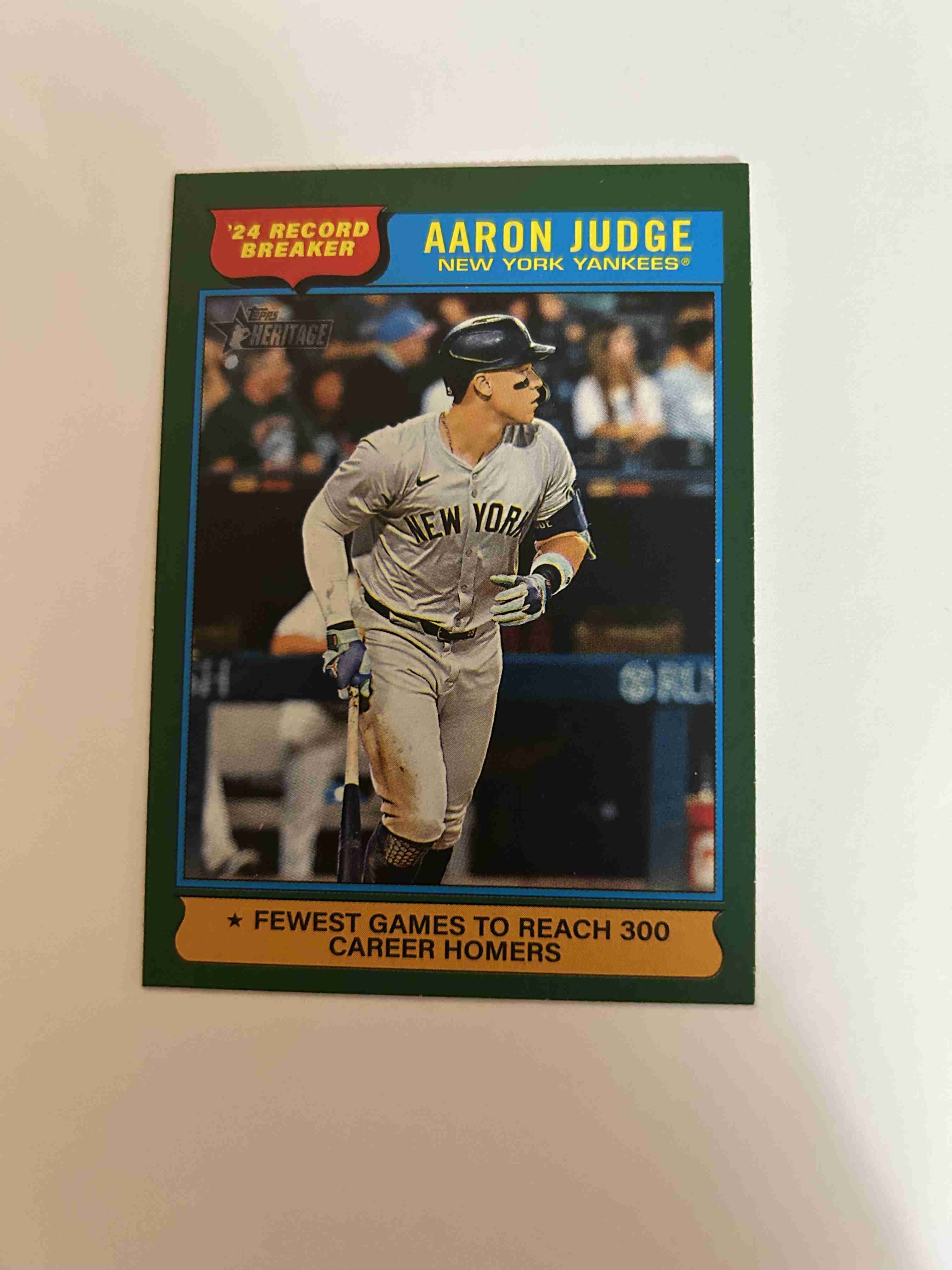 This auction is for a 2025 Topps Heritage Baseball #3 Aaron Judge Record Breaker (green border).