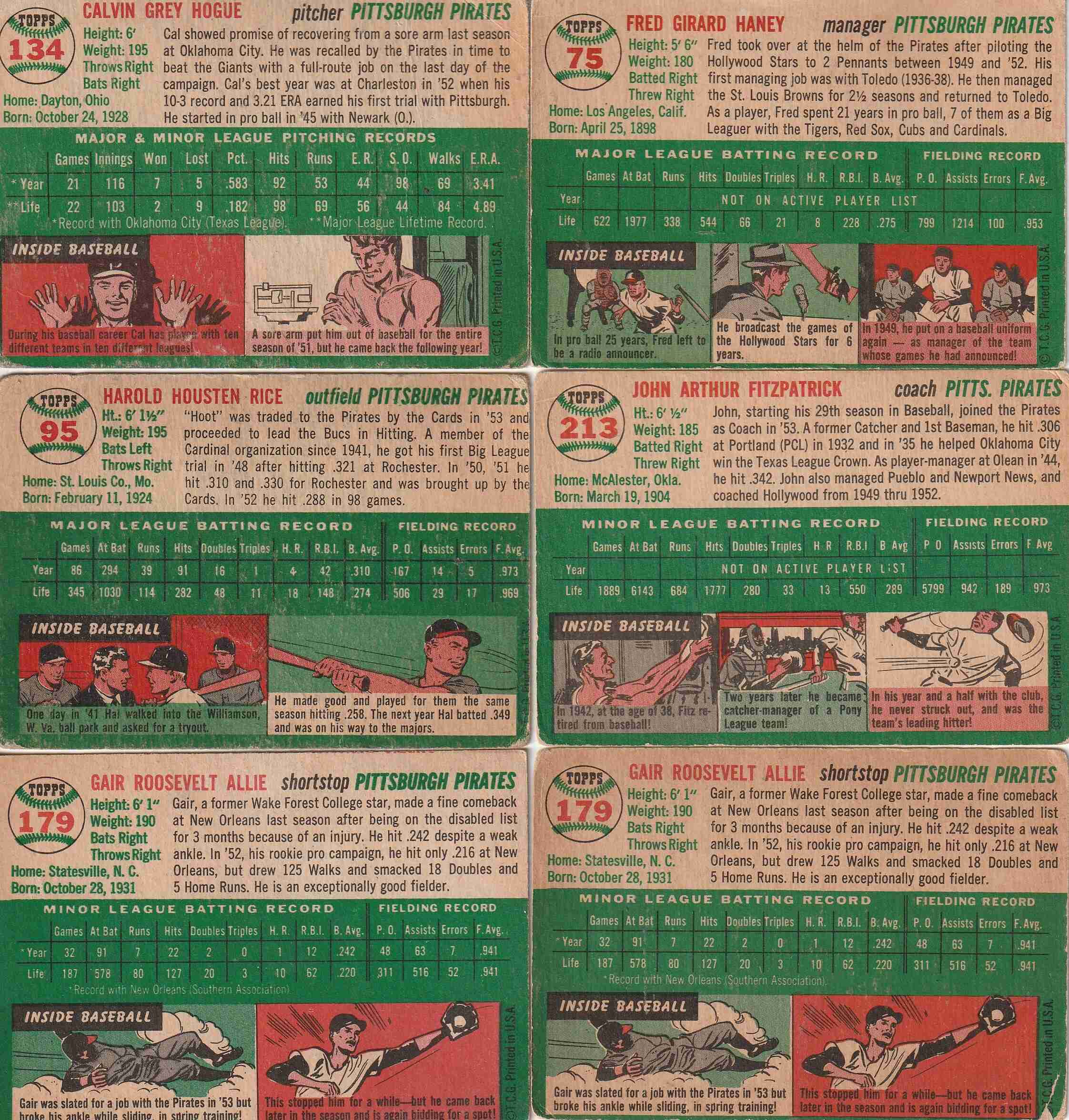 6-1954 Topps Pirates #'s 75 95 134 179 (2) 213