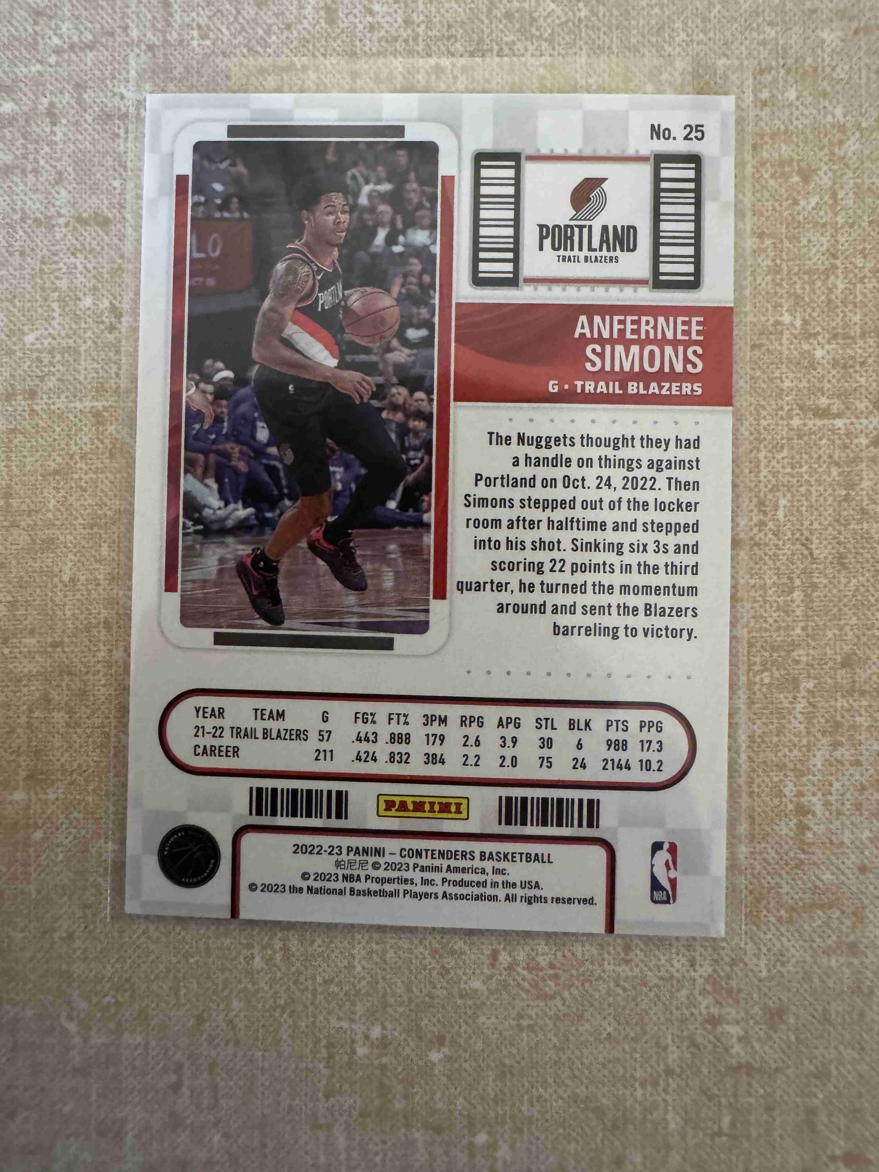 2022-23 Panini - Contenders ANFERNEE SIMONS Ser. Num /199