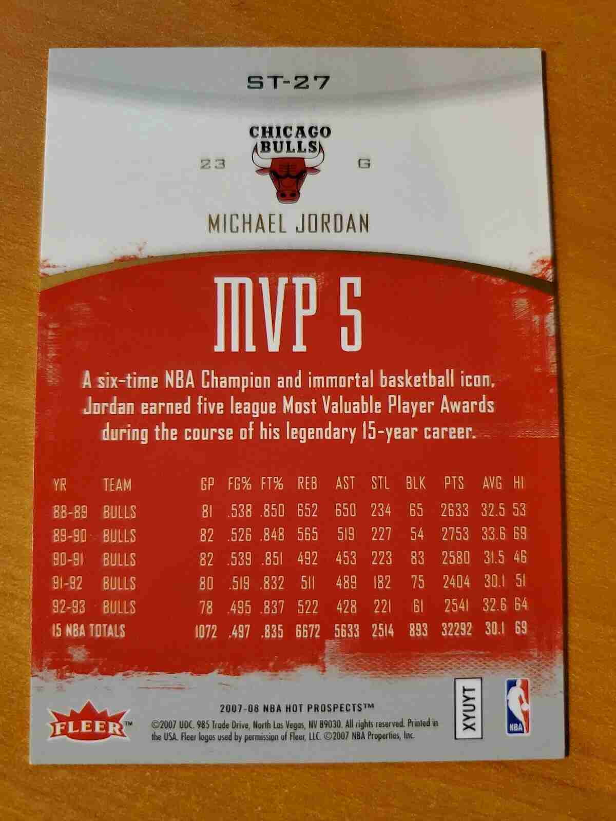 2007-08 NBA Hot Prospects Stat Tracker Michael Jordan Card #ST-27