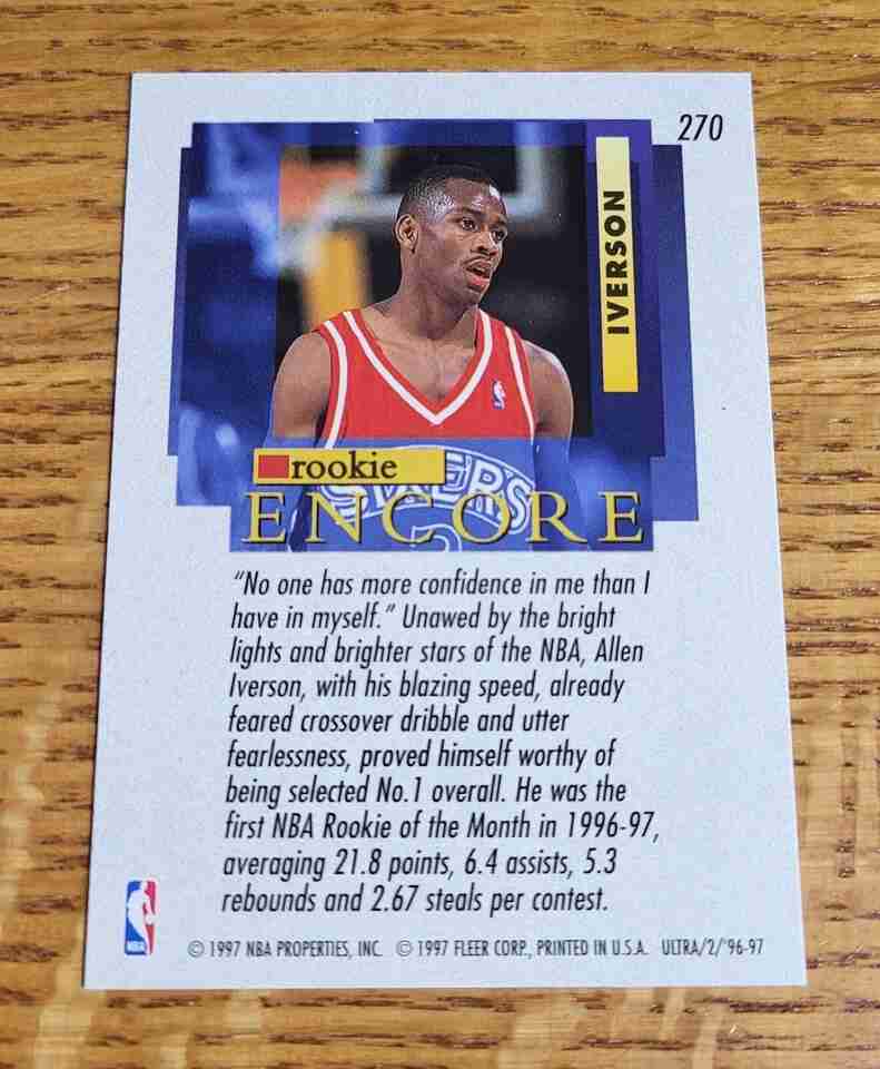 1996 Allen Iverson Fleer Ultra Rookie Card #270