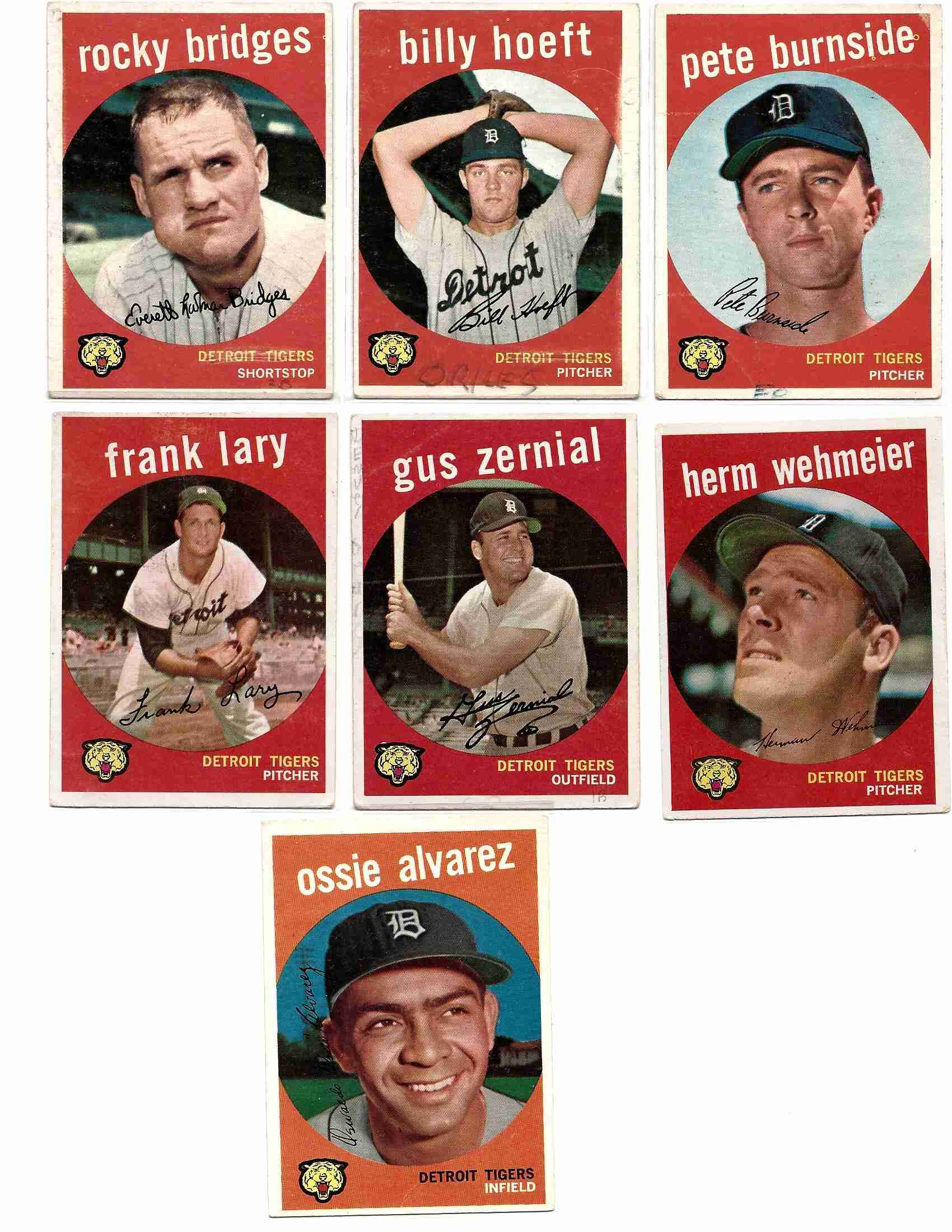 15 CARD LOT OF 59 TOPPS DETROIT TIGERS. PLEASE SEE SCANS FOR CONDITION AND CARD #'S.
