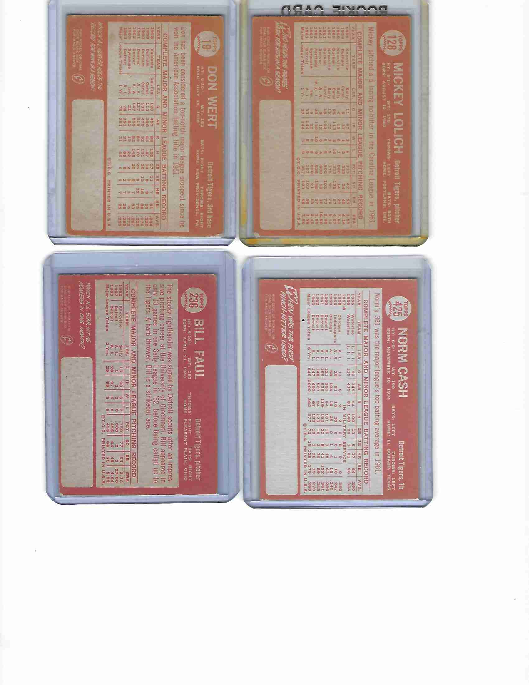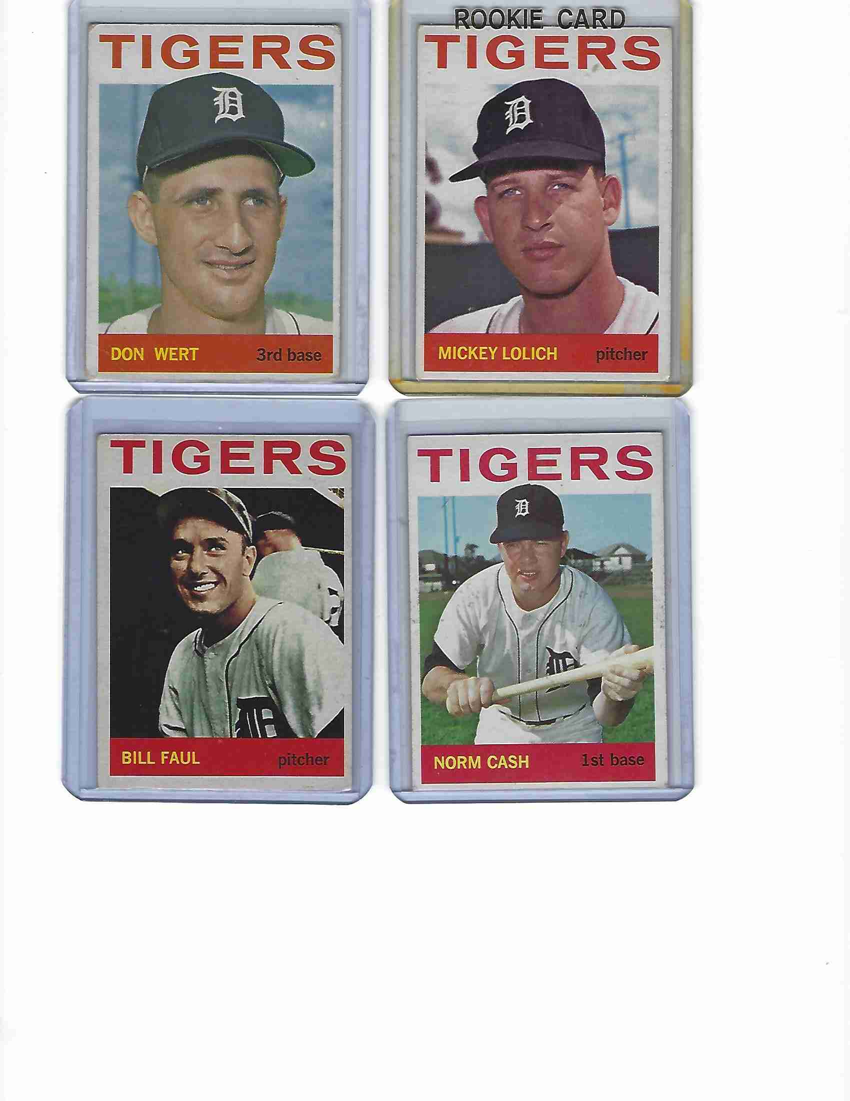 4 1964 TOPPS DETROIT TIGERS CARDS WITH MICKEY LOLICH RC. SEE SCANS FOR DETAILS/ CONDITION