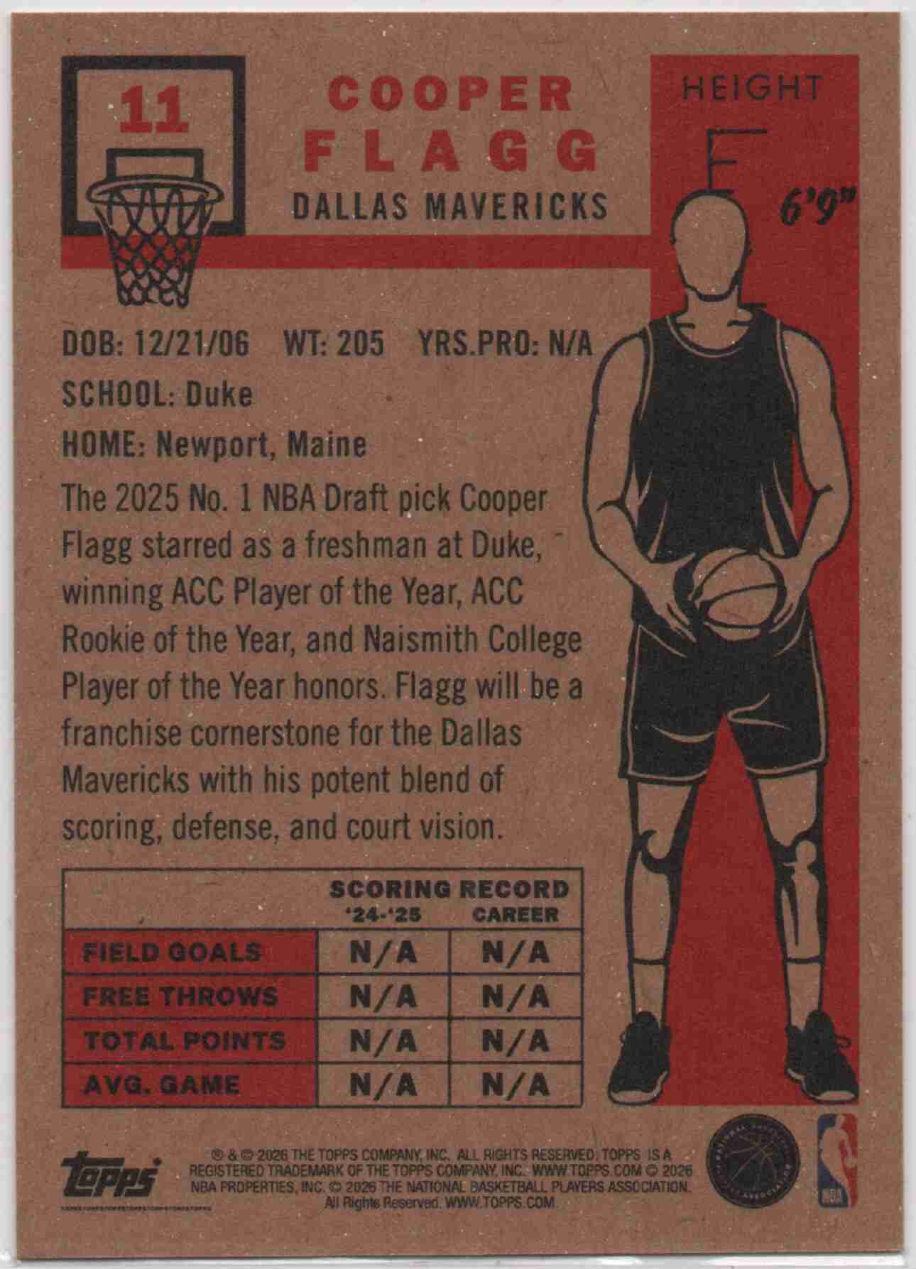 Cooper Flagg 2025/26 Topps Living Set #11 Rookie SP