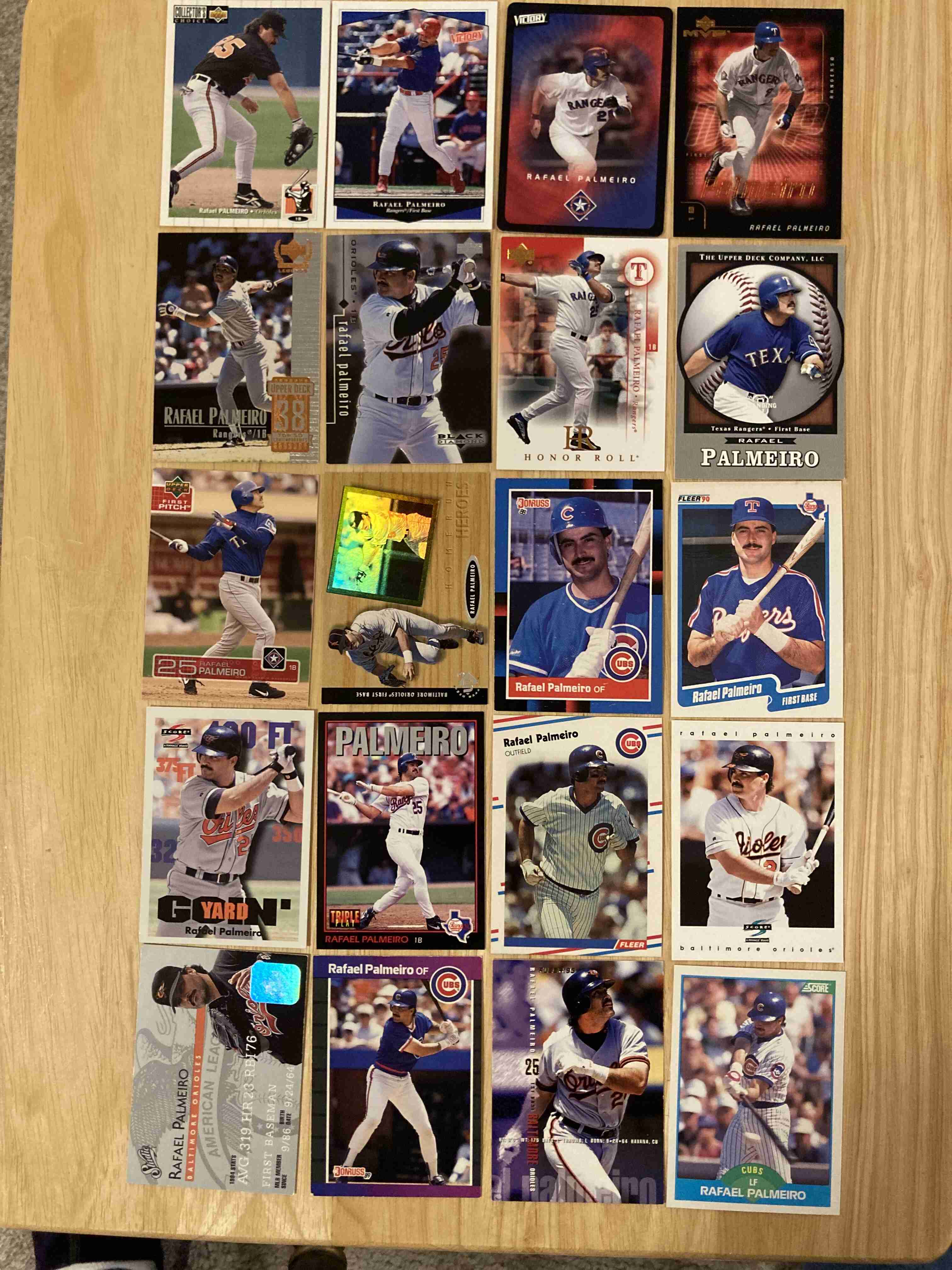 80 card lot of Rafael Palmeiro. Lot includes base and insert cards. No Duplicates. You receive all the cards in the 4 pictures. If you have any questions please contact me.