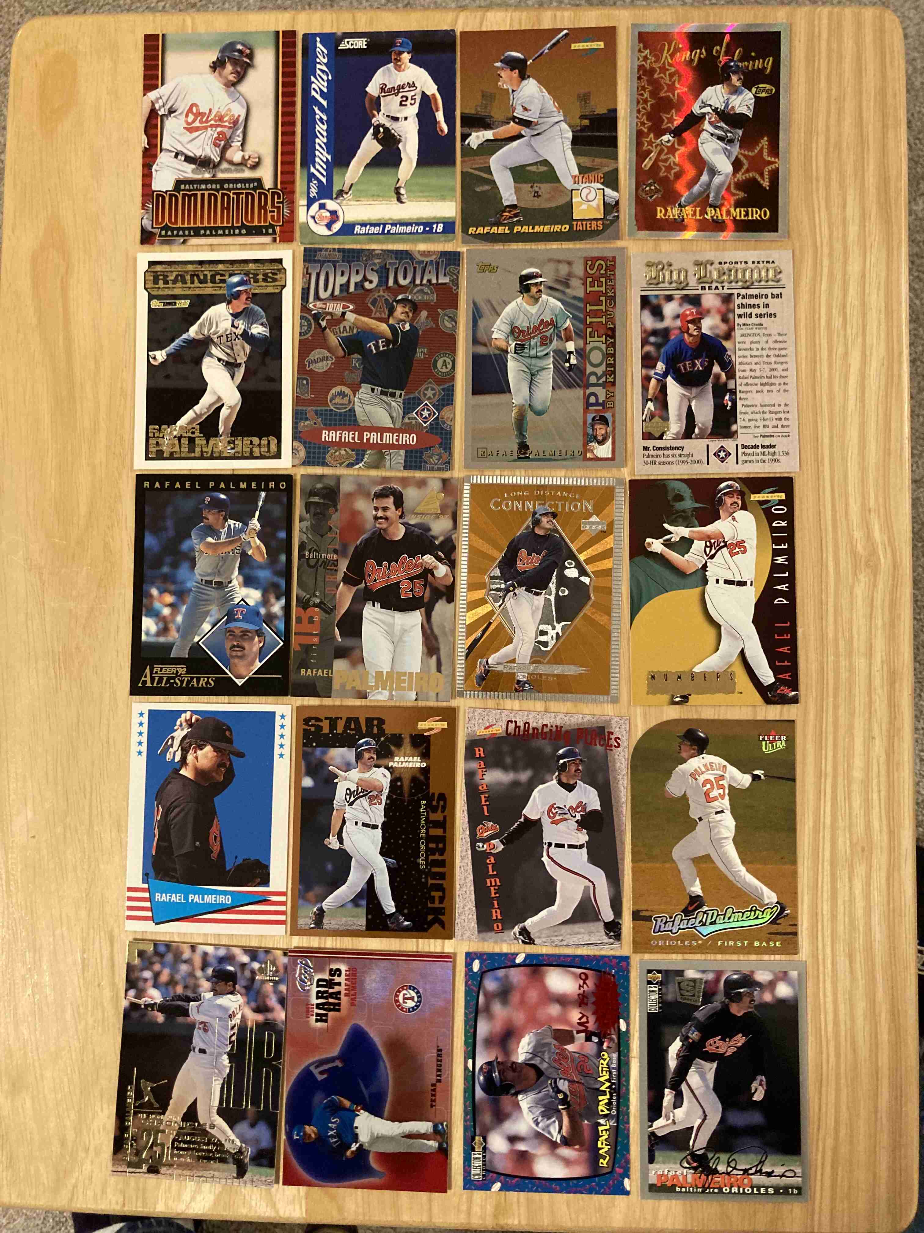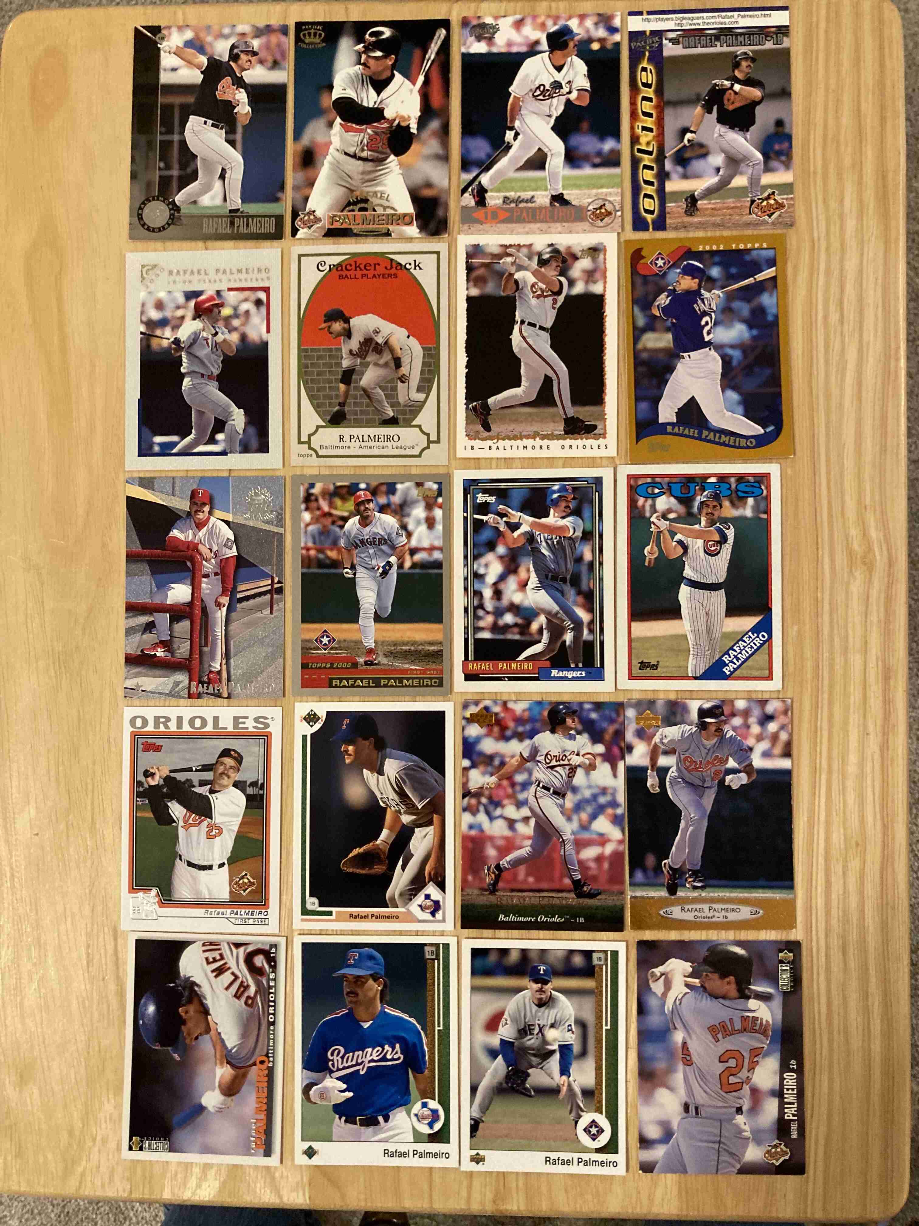80 card lot of Rafael Palmeiro. Lot includes base and insert cards. No Duplicates. You receive all the cards in the 4 pictures. If you have any questions please contact me.