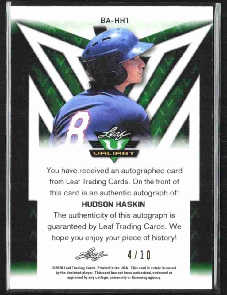 Hudson Haskin 2020 Leaf Valiant Gold RC Auto /10 #BA-HH1