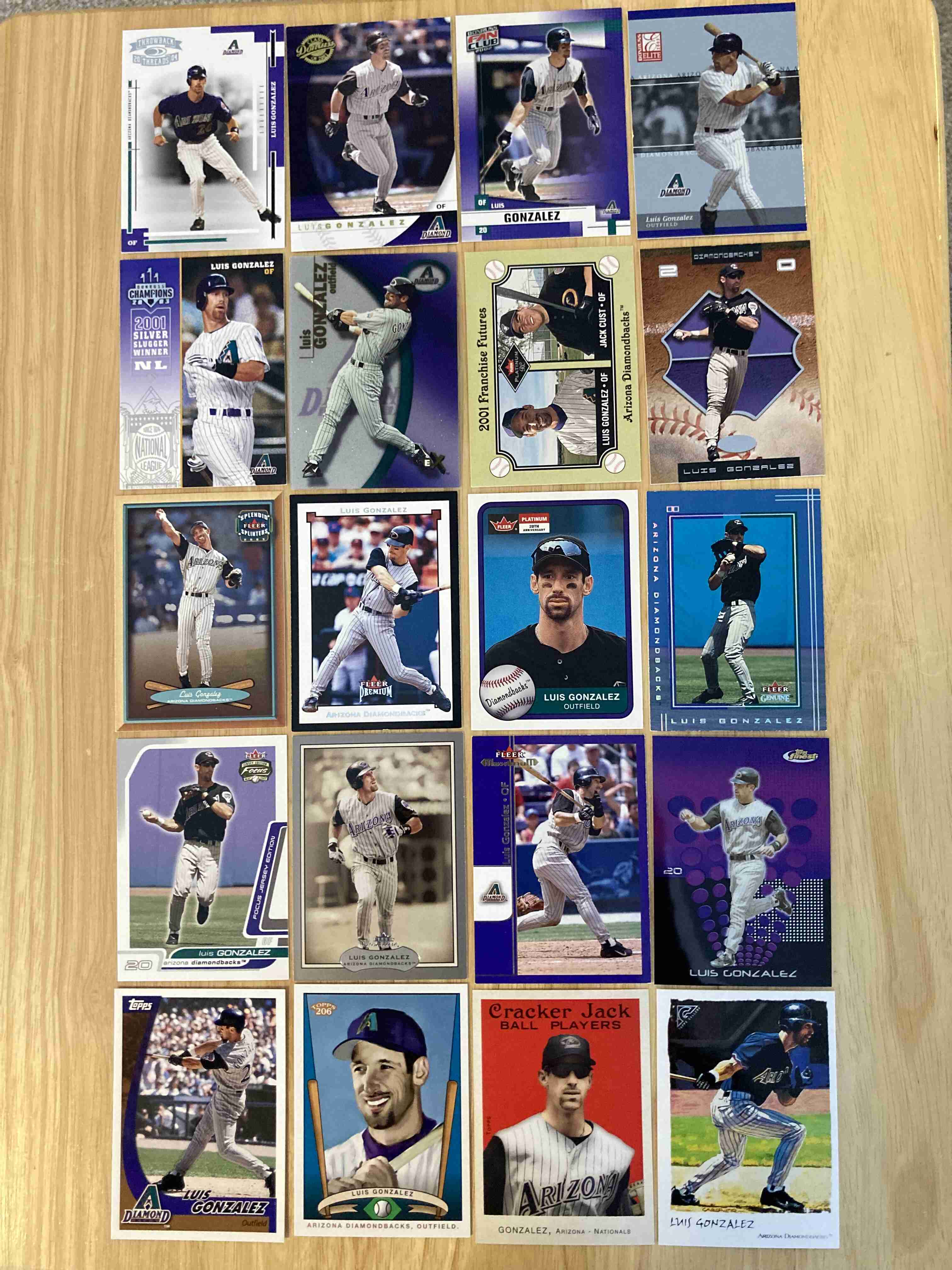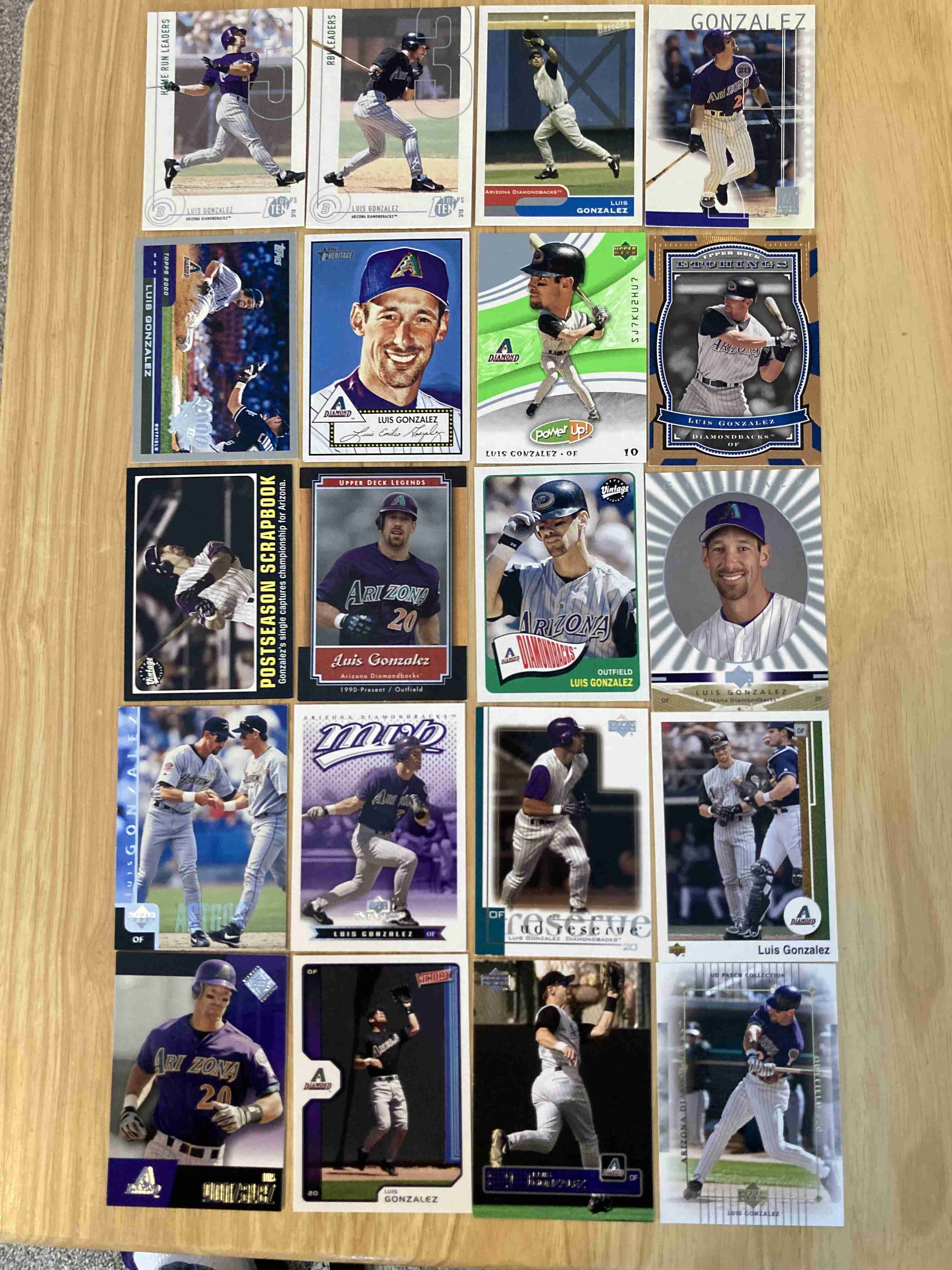 Luis Gonzalez 80 card lot. No Dups. Base, inserts & 3 GU