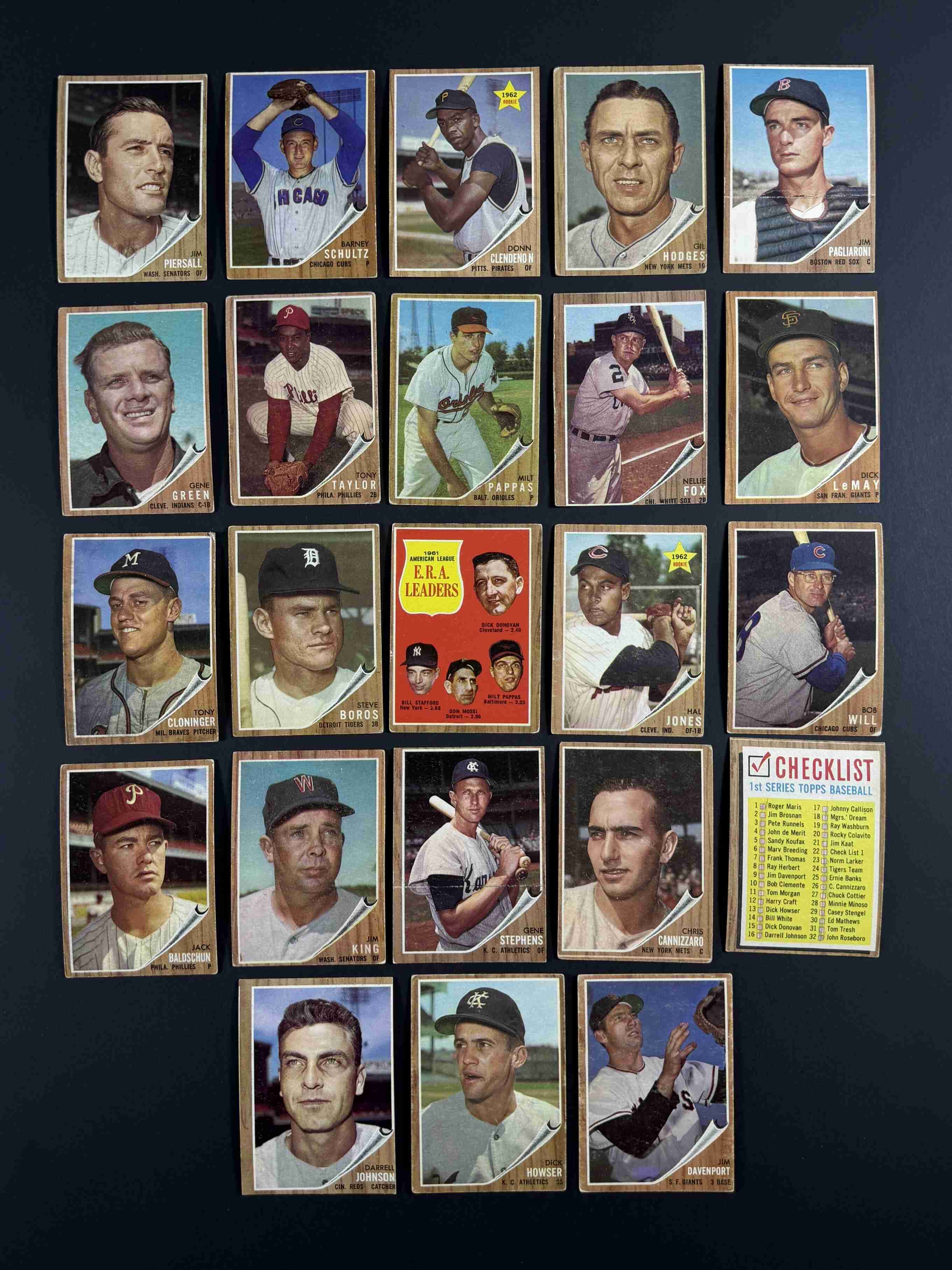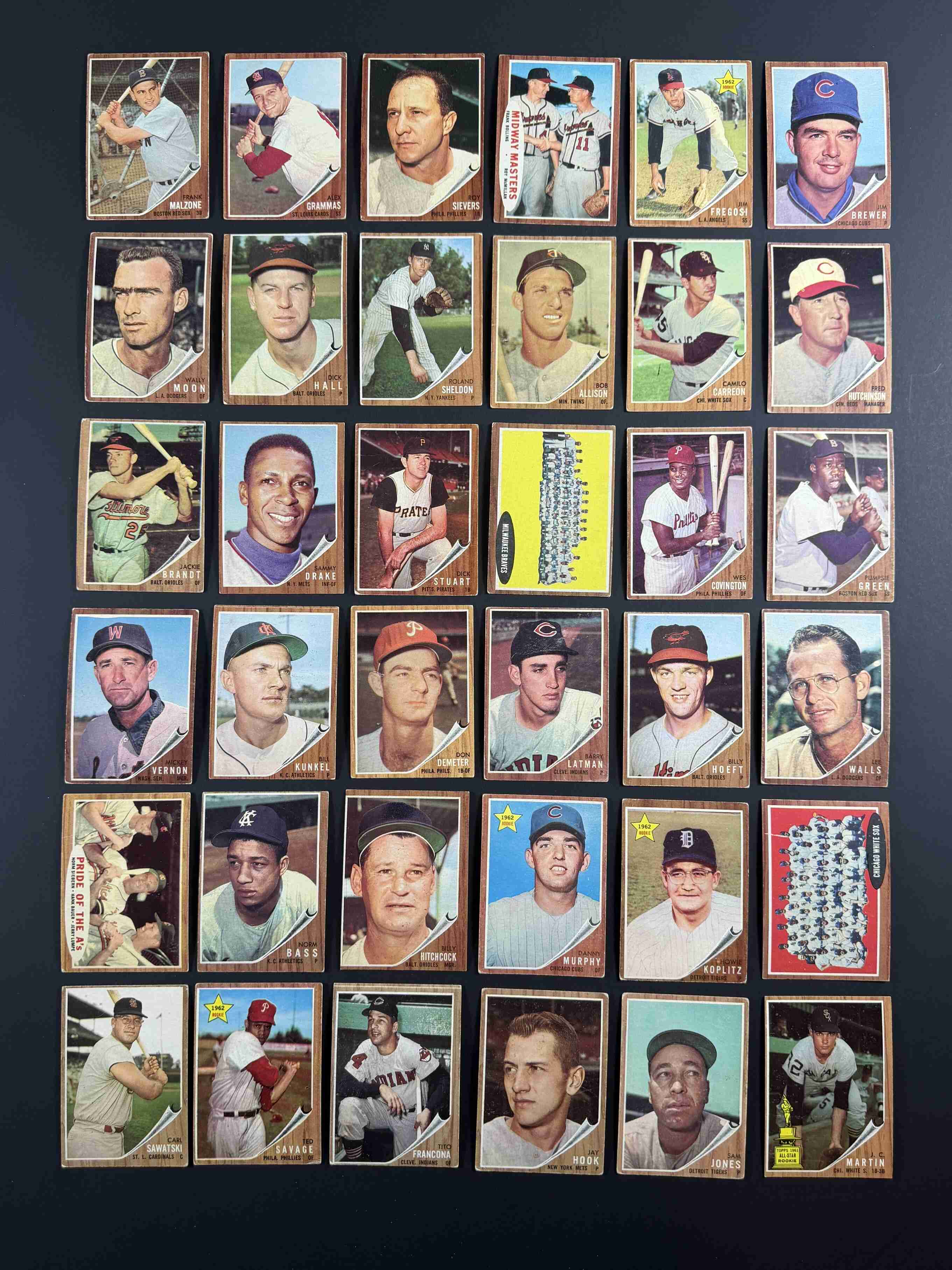 95 different 1962 Topps baseball. Condition ranges from GOOD to VG-EX with most being either GOOD or VG and a few VG-EX. Overall condition is VG.