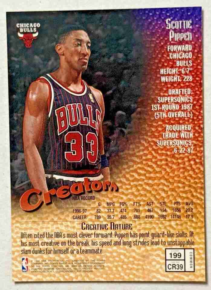 Scottie Pippen HOF 1997-98 Topps Finest - #199 Creators Chicago Bulls w/ Coating