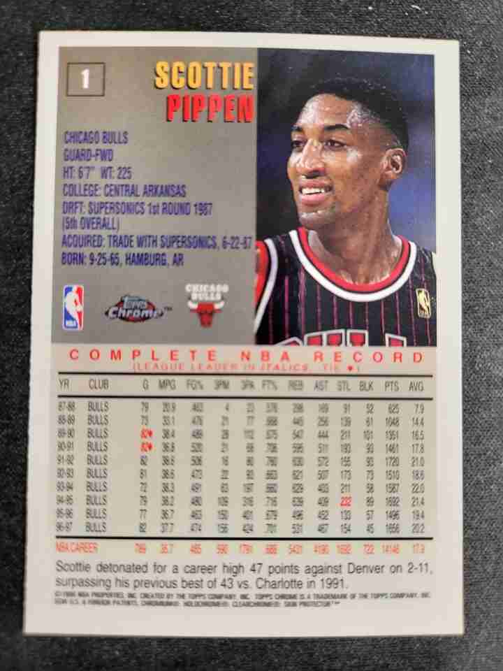 1997-98 Topps Chrome Scottie Pippen Card #1 Bulls
