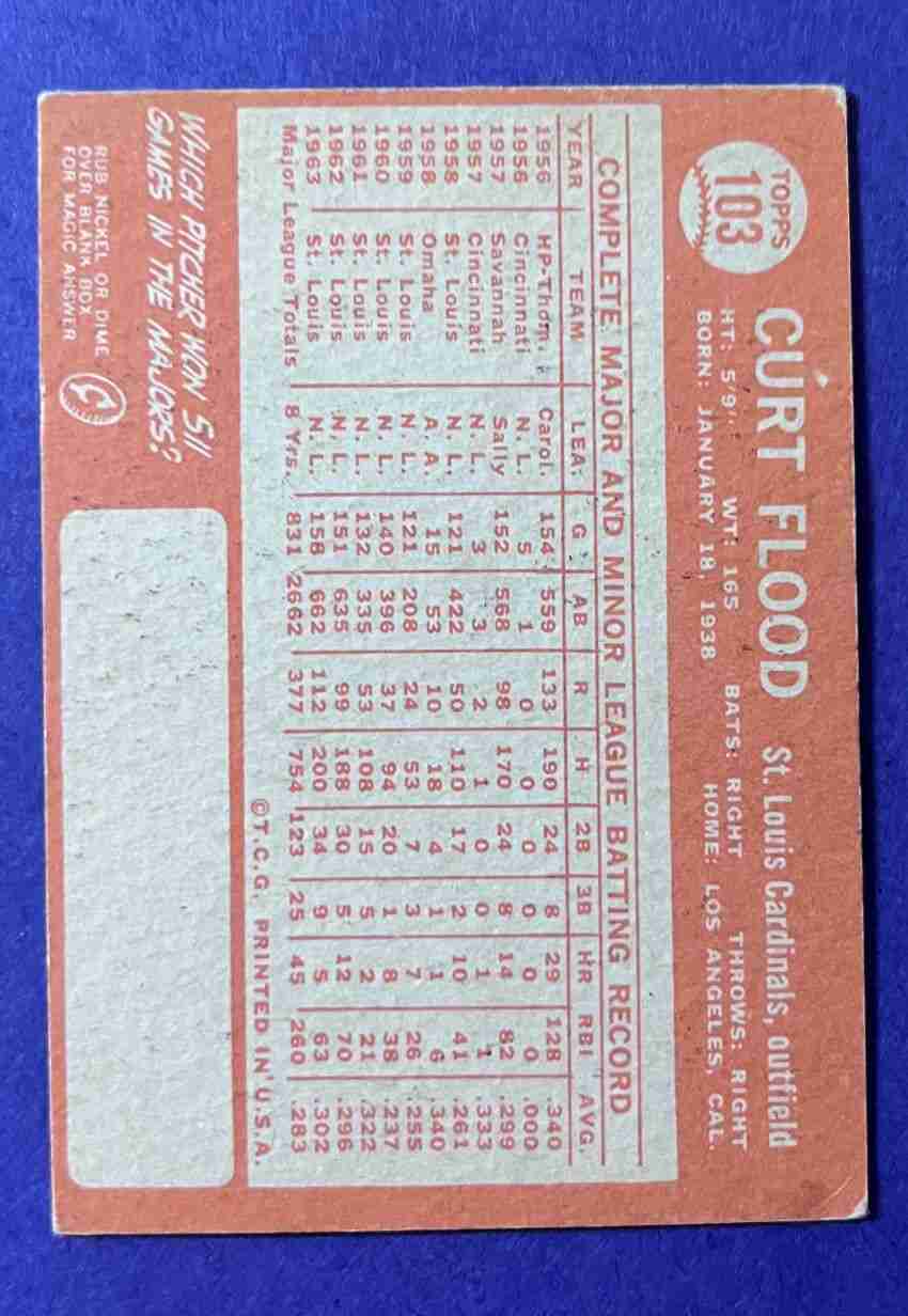 64 Topps CURT FLOOD #103 ++