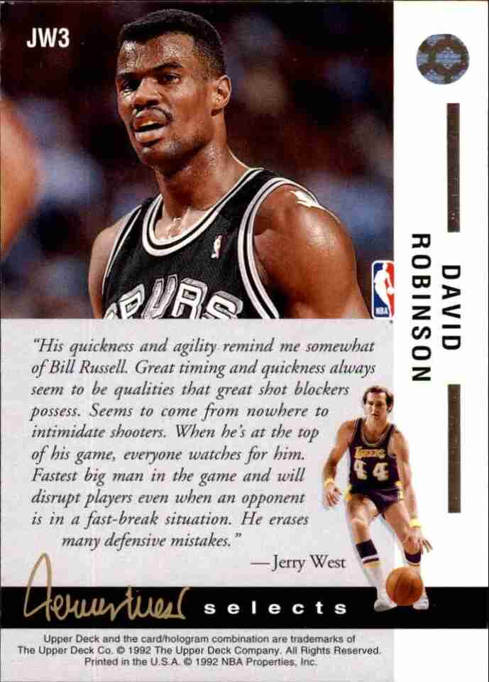 1992-93 Upper Deck Jerry West Select JW3 David Robinson/Best Shot Blocker