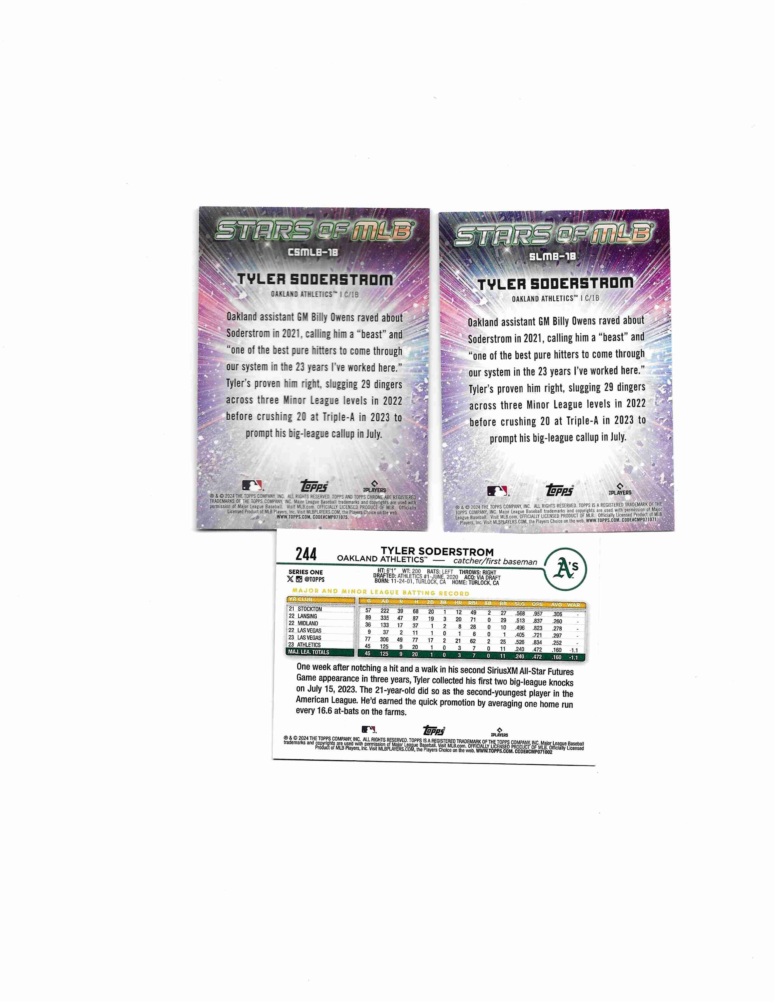 2025 TOPS TYLER SODERSTROM CARD 244 RC. #SLMB-18 AND CSLMB CCHROME. ALL CARD ARE IN EXCELLENT CONDITION