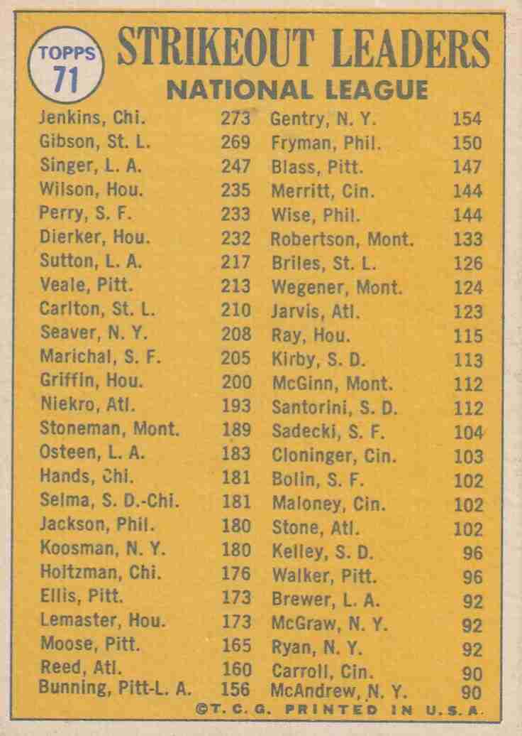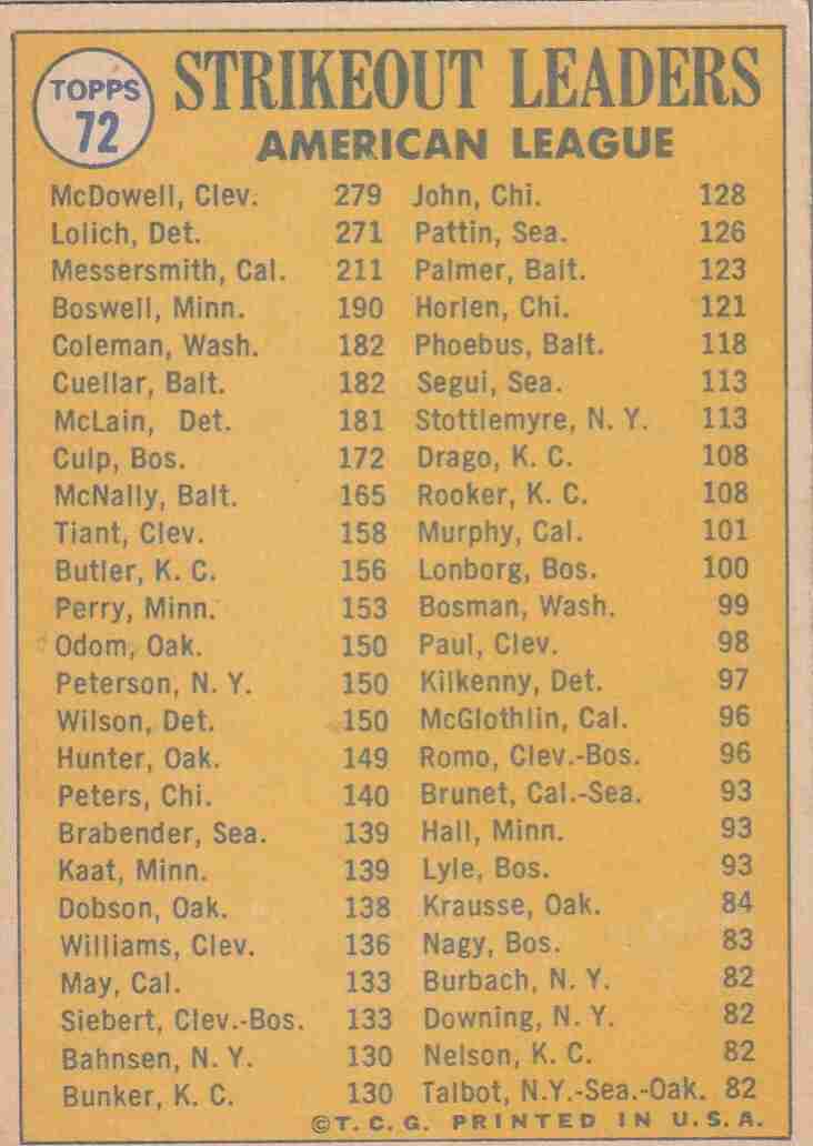 2-1970 Topps #'s 71 72 1969 AL & NL SO Leaders