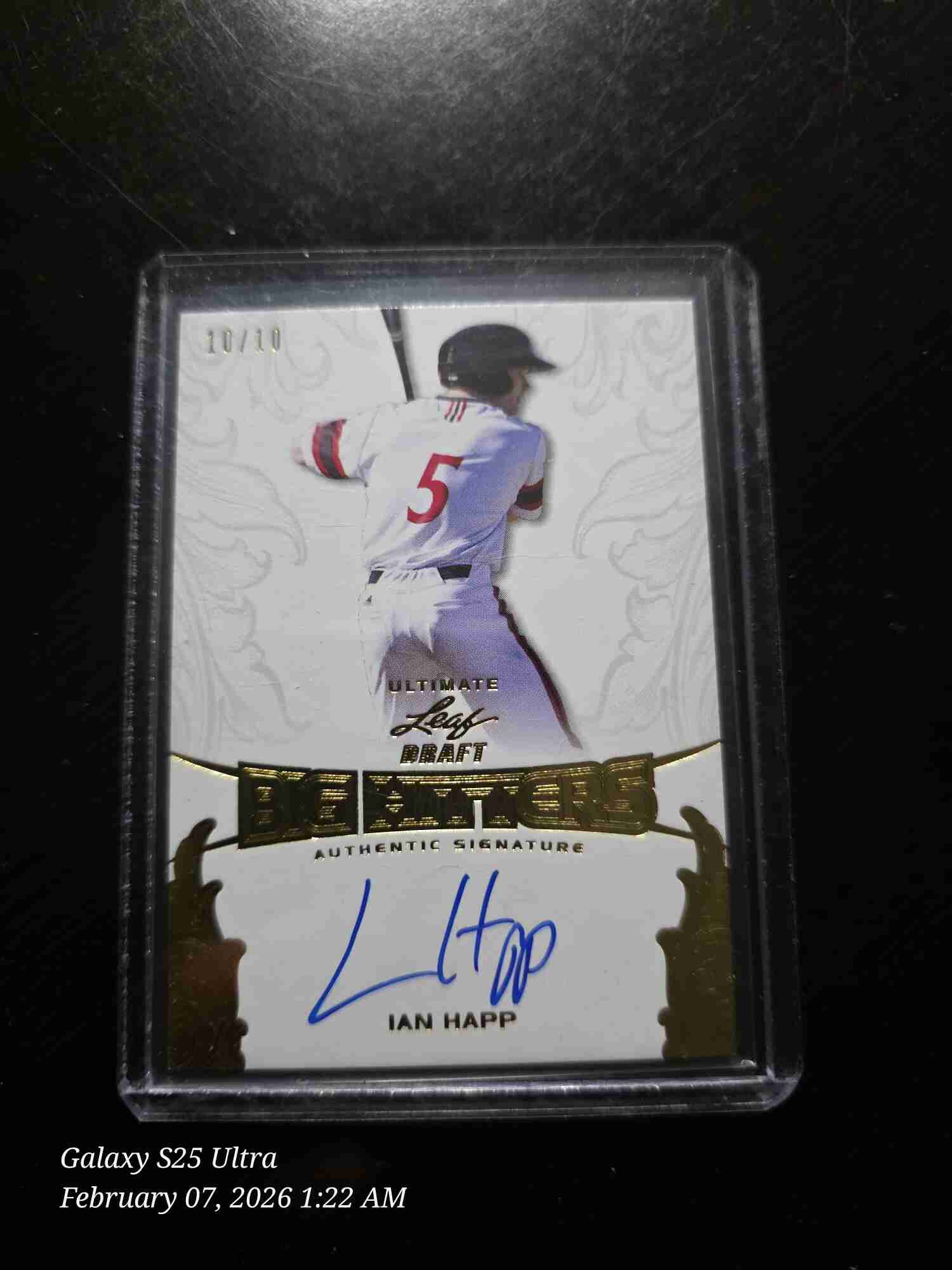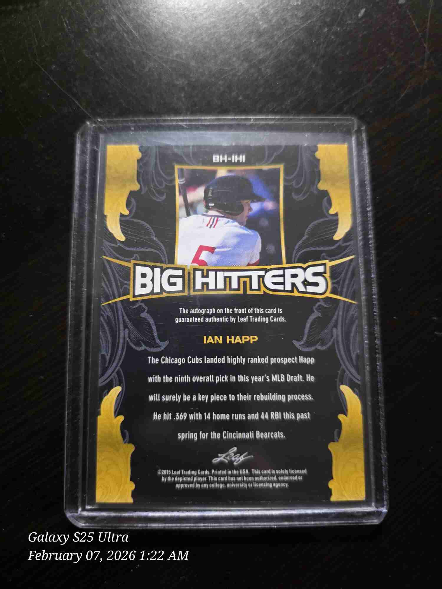 Ian Happ 2015 Leaf Ultimate Draft Big Hitters Gold Etched Foil 10/10 Auto. Card is in Nr-Mt condition.