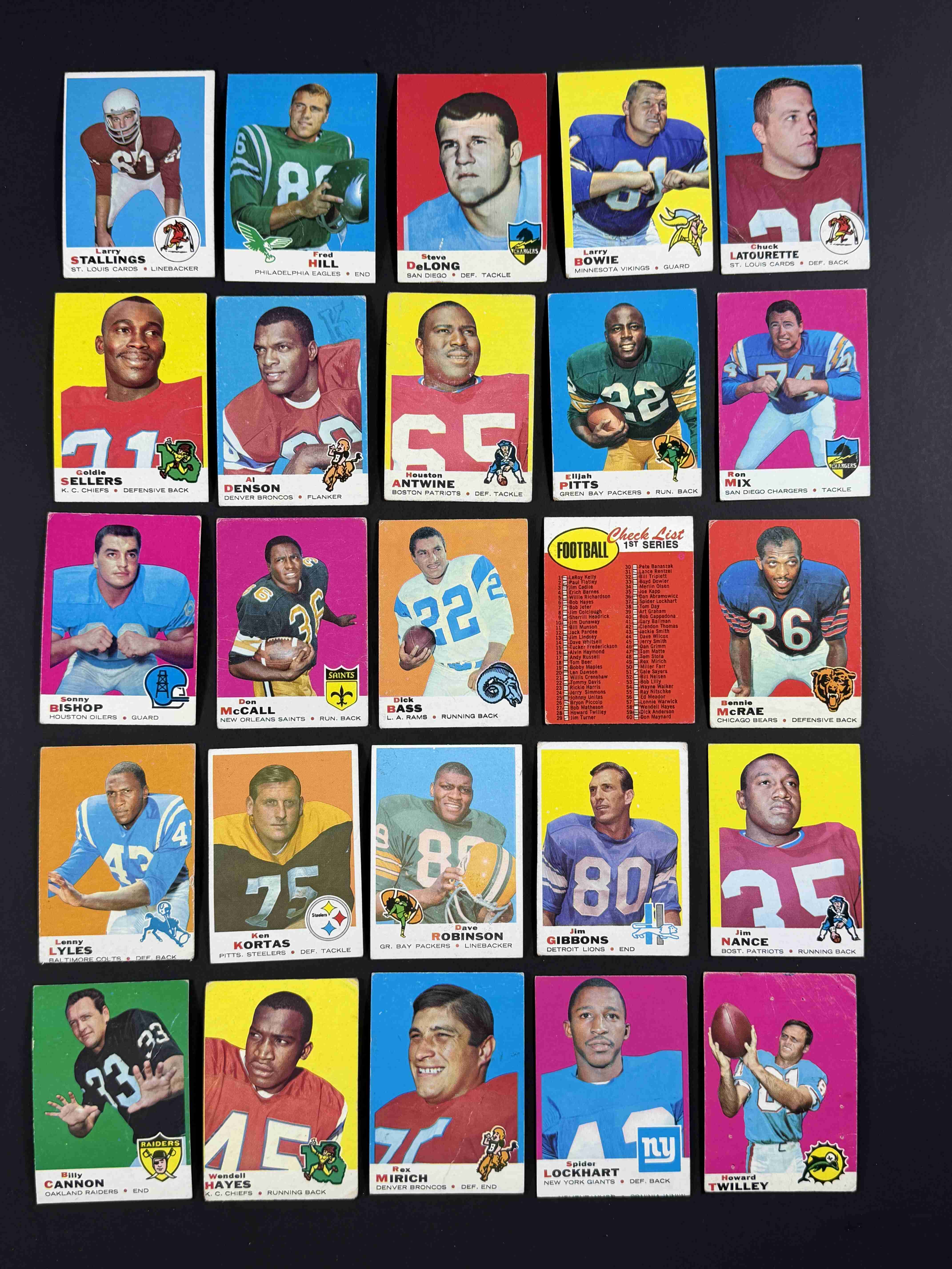 62 different including stars. Condition is low grade with varying degrees of creasing and/or flaws. The Griese card has tape on one edge. Two cards have small pen initials on front and one light stamp mark. One common card has staple holes.